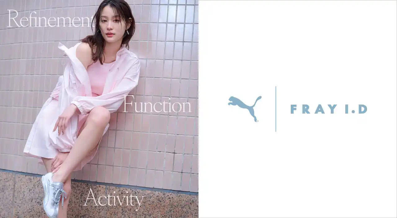 株式会社マッシュスタイルラボ(本社 東京都千代田区/代表取締役社長 近藤広幸)が展開するレディースブランド「FRAY I.D(フレイ アイディー)」は、女優・花山瑞貴を起用したグローバルスポーツブランド「PUMA」とのコラボレーションアイテムを2026年4月3日(金)12:00(正午)に、オフィシャルオンラインサイト、マッシュグループ公式アプリ「MASH STORE(マッシュストア)」およびECデパートメントストア「USAGI ONLINE(ウサギオンライン)」にてオンライン先行発売、2026年5月6日(水)よりFRAY I.D全国直営店舗にて順次発売いたします。 |