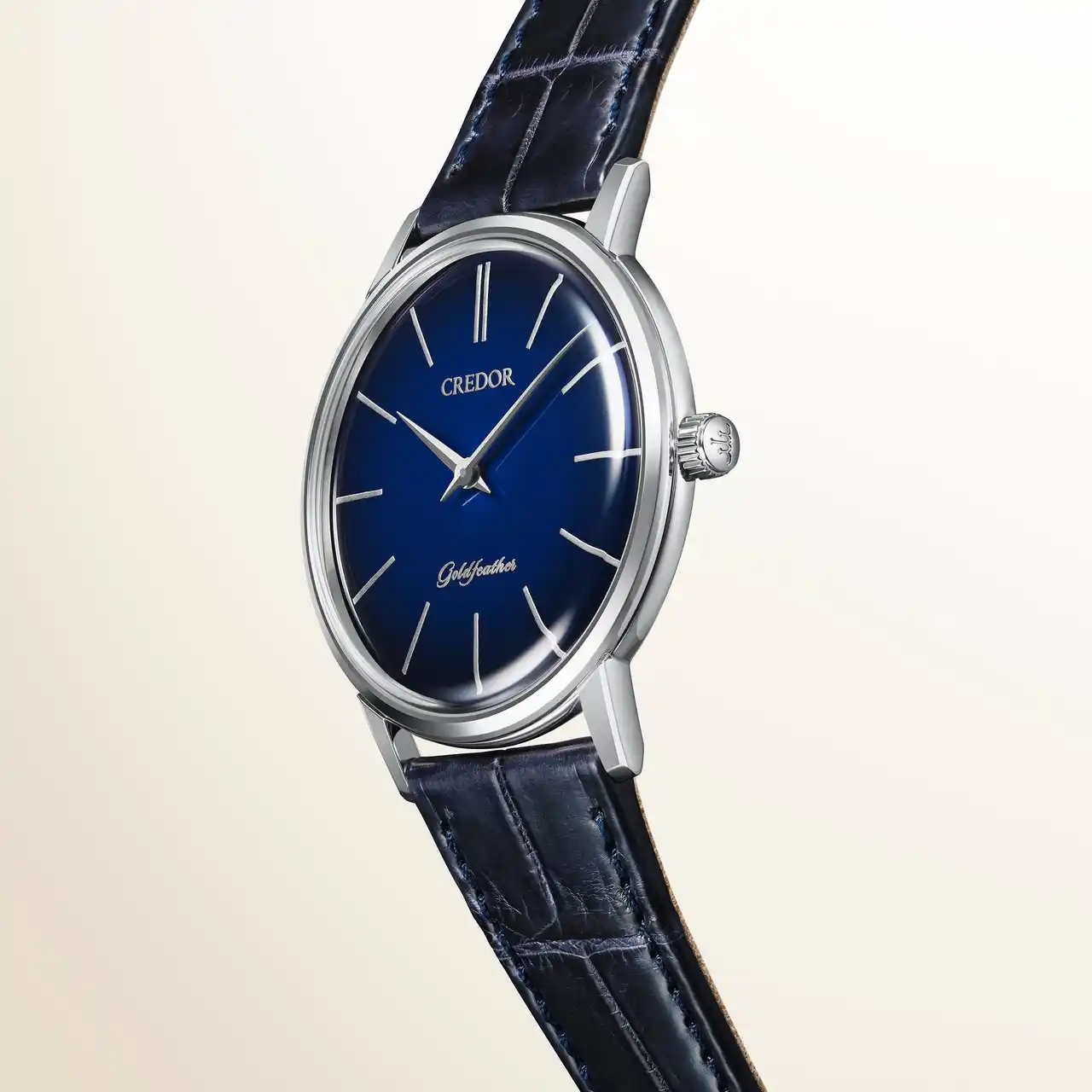 1960年に誕生した「セイコー ゴールドフェザー」は、セイコーの薄型メカニカルウオッチの先駆けであり、2023年に<クレドール>がその名を受け継ぎました。羽根のように「薄く」、「軽やかで」、「空気をはらみ」、「艶やかで」、「優美」であることをデザインコンセプトとし、現代のドレスウオッチとしてふさわしいスペックとデザインにアップデートしました。 |