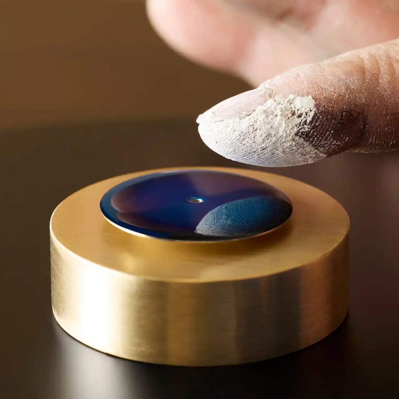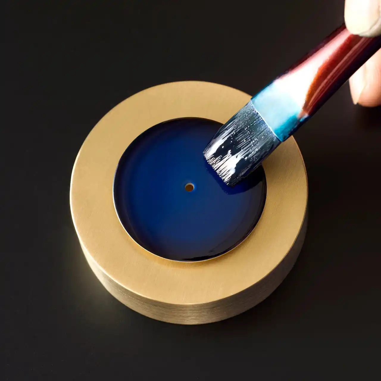 漆芸ダイヤルの色合いは、黒漆との調和を追求し、彩度を緻密に調整することで生まれた深い青色です。熟練の匠が幾重にも塗り重ねることで、静謐で重厚な美しさを湛えています。 |
