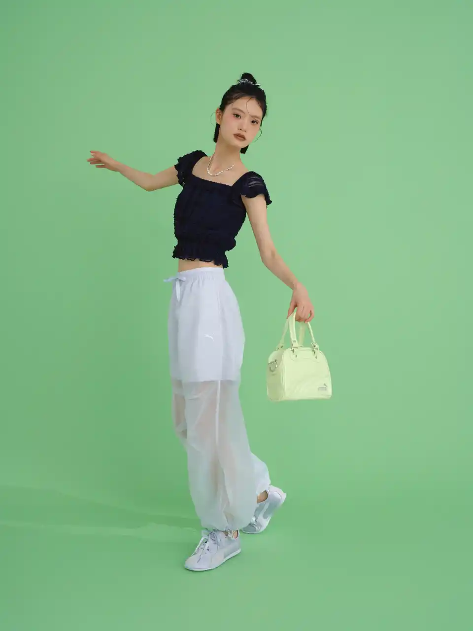 コラボレーションアイテムには、フリルのディテールで女性らしさを効かせたシアーブルゾンとウーブンパンツのセットアップやクラシカルなカラーリングでLILY BROWNらしさを表現したポロシャツ、さらにアーカイブモデルをアレンジしたミニグリップバッグをラインアップ。 |
