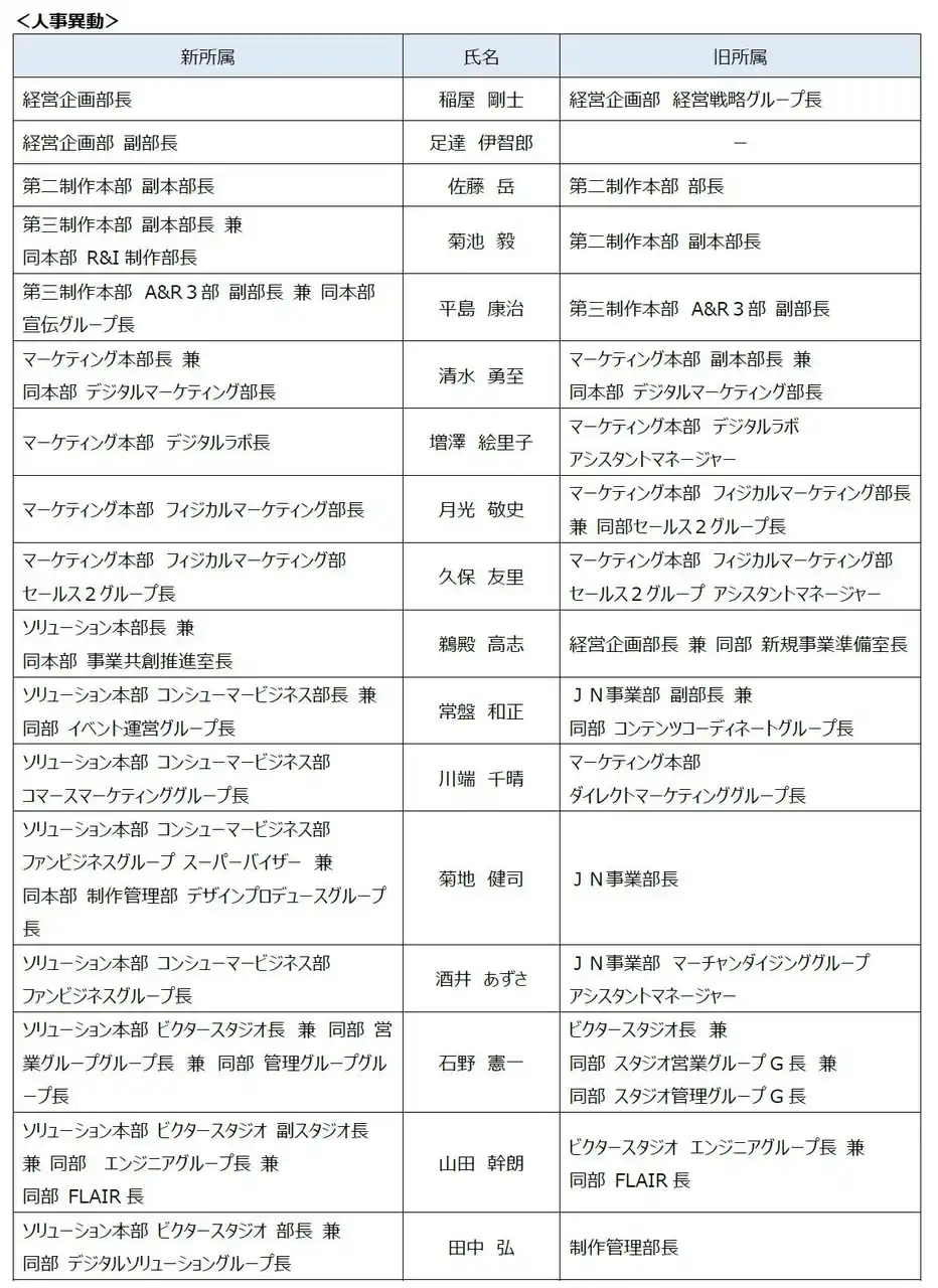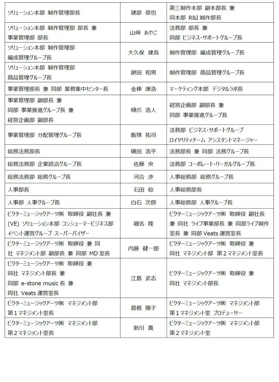 【ビクターエンタテインメント株式会社】 2026年4月1日付組織改編及び人事異動について