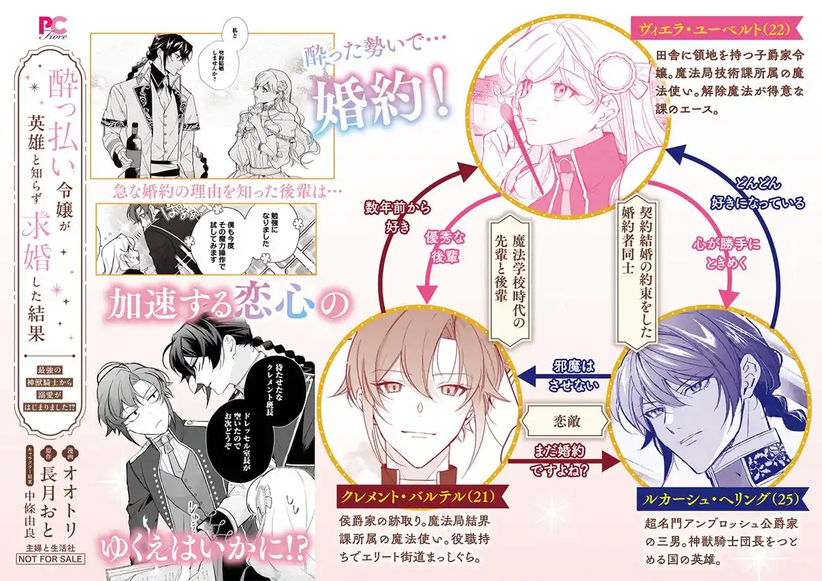 コミックス1巻は発売から約半年で早くも3刷、コミックス2巻も発売前重版決定、さらには原作となっている小説も1~2巻重版決定と、止まることを知らない「酔っ払い令嬢が英雄と知らず求婚した結果」、通称「酔い知ら婚」。 |