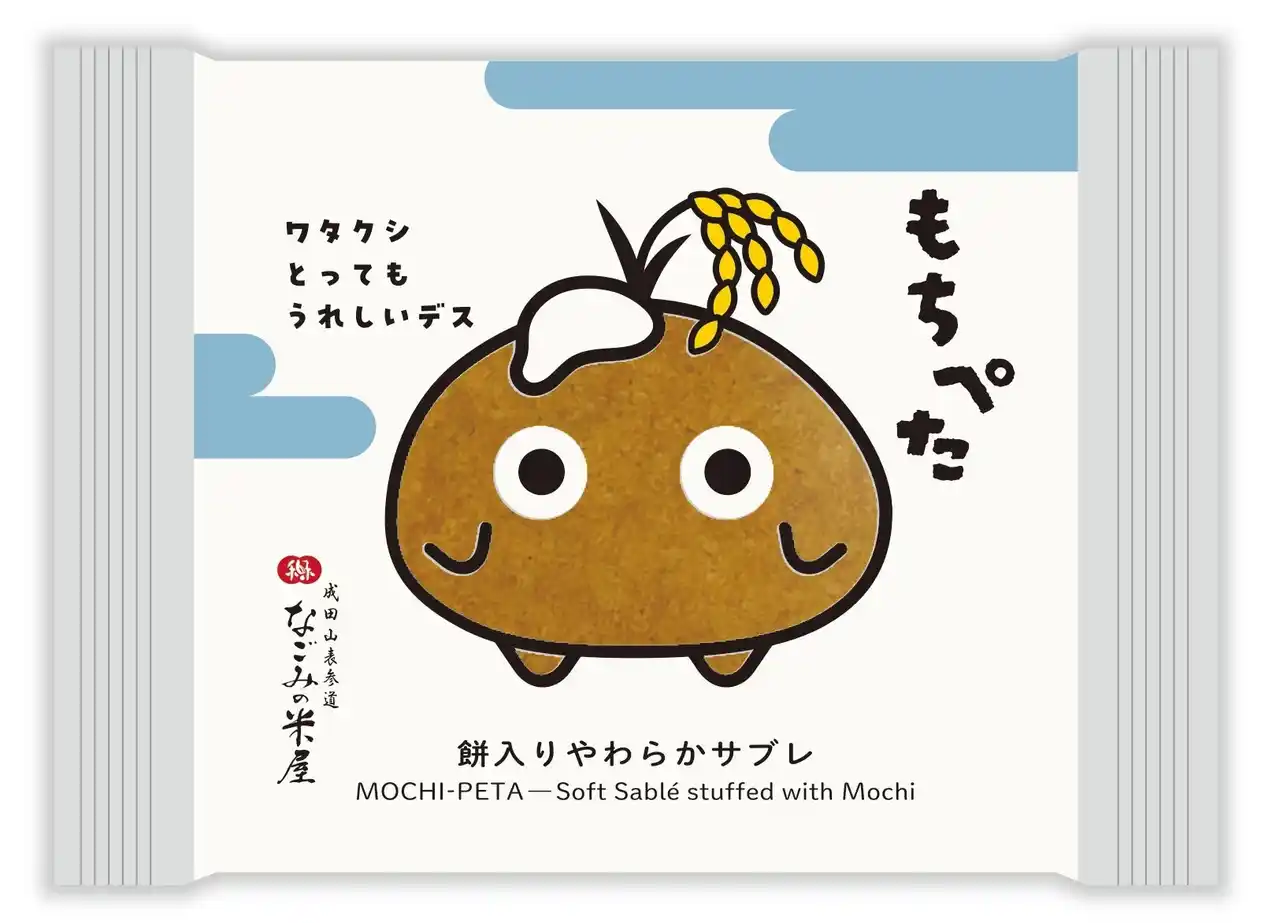 パッケージには、お餅から発想したほのぼのとしたキャラクター「もちぺた」をデザインしました。 |