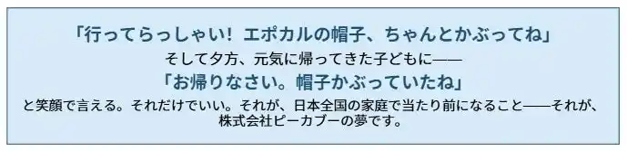 | 埼玉県を拠点に、紫外線対策ブランド「EPOCHAL(エポカル)」を展開する株式会社ピーカブーは、日本全国で、通学中のすべての子どもたちが安全に登下校できる社会を実現したいという夢を、 | |||||||||