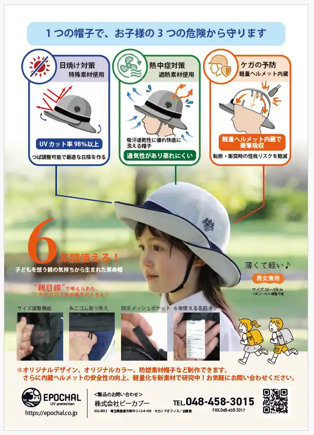 | ▶ 通学帽子ページ:https://epochal.co.jp/s48277320/uv-seibou/ | |||||||||