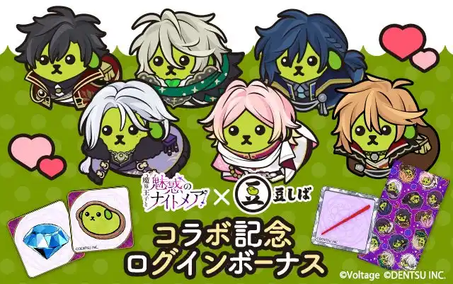 本コラボレーションを記念して、ログインボーナスを実施いたします。期間中、アプリにログインすると、 「魔界ナイトメア」をよりお楽しみいただける各種アイテムや豆しばクッキー、アバター、待ち受けをプレゼント! |