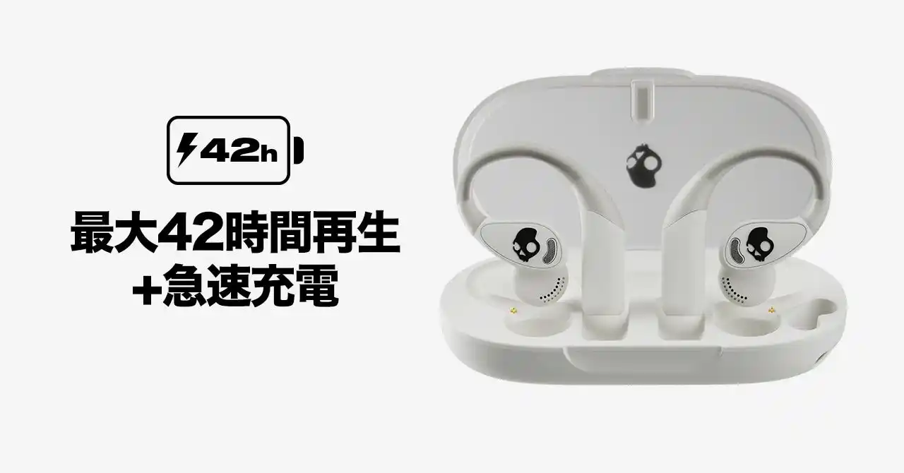 ・オープンイヤーデザイン ・ずれにくいイヤーハンガー ・着脱式ネックバンド/ランヤード ・IP44対応 ・最大42時間再生(本体10時間+ケース32時間) ・急速充電対応(10分で約2時間再生) ・Bluetooth 5.3 + LE Audio ・4種のイコライザ ・Skullcandyアプリ対応 ・ボタンカスタマイズ ・マルチポイント ・クリアボイススマートマイク ・Google Fast Pair対応 |