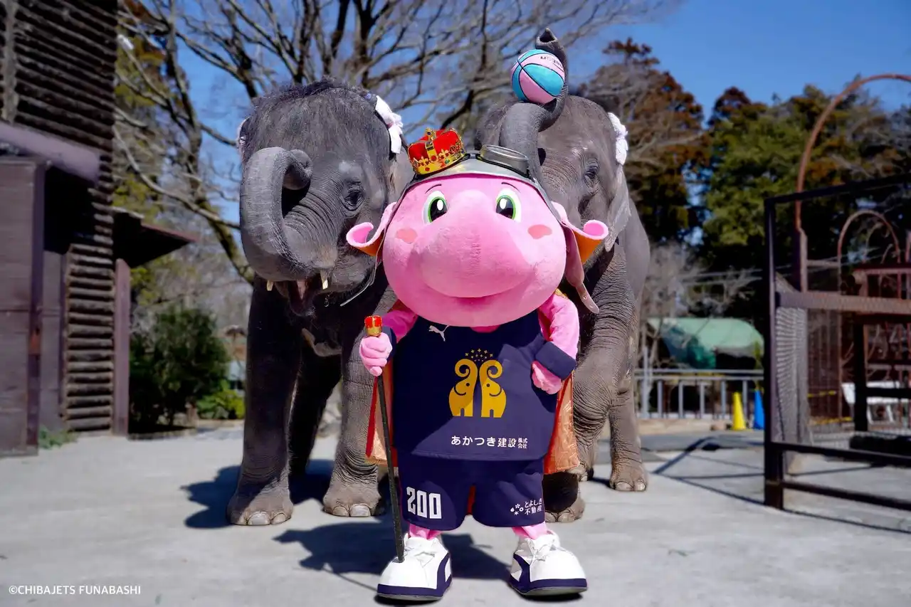 今回の国王就任の狙いは「市原ぞうの国のさらなる繁栄」と「千葉県の盛り上げ」そして、最大の目的は「ゾウさんの価値を上げ世界一のゾウさんになること」だという。千葉ジェッツのマスコットとして学んだおもてなしの心で、最終的には「ぞうの国」を千葉県全土に拡大し、世界に誇る象のテーマパークにしたいと語る。また、千葉県をゾウさんの形に再形成し「エレファン島」への変貌を目指し、スポーツの枠を超えて「パオン一丸」で千葉県全体をさらに盛り上げていきたいという野望も明かした。 これからは別の道を歩むことになったが、千葉ジェッツは「千葉県をバスケットボール王国にする」というビジョン、ジャンボくんは「千葉県をエレファント王国にする」というビジョンを胸に突き進んでいく。 |