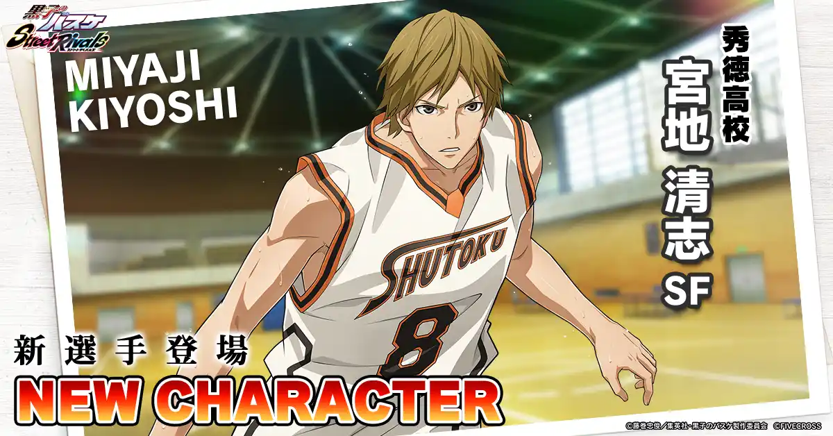株式会社ファイブクロスは、アニメ『黒子のバスケ』の3Dバスケゲーム『黒子のバスケ Street Rivals』(黒バスSR)において、「宮地清志(SF)」が登場する期間限定イベントを開始したことを発表いたしました。