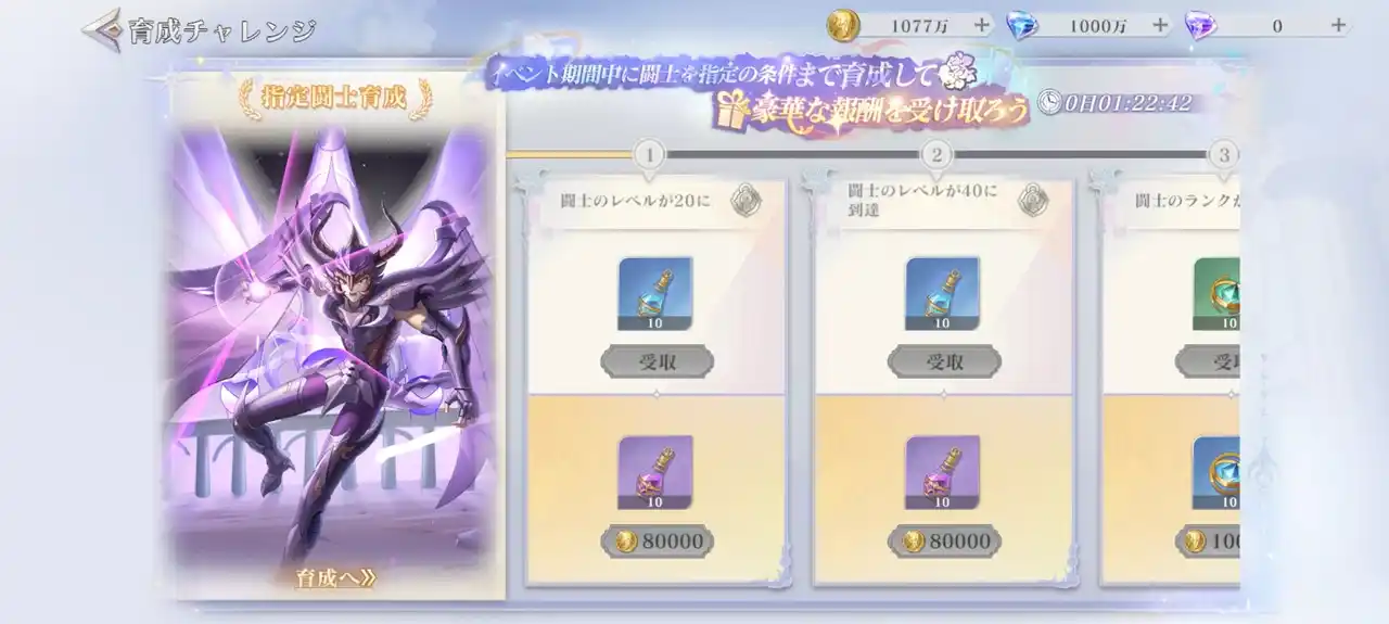 | イベント期間中、闘士「天猛星・ラダマンティス」を指定の条件まで育成すると、豪華報酬を受け取れます! | |||