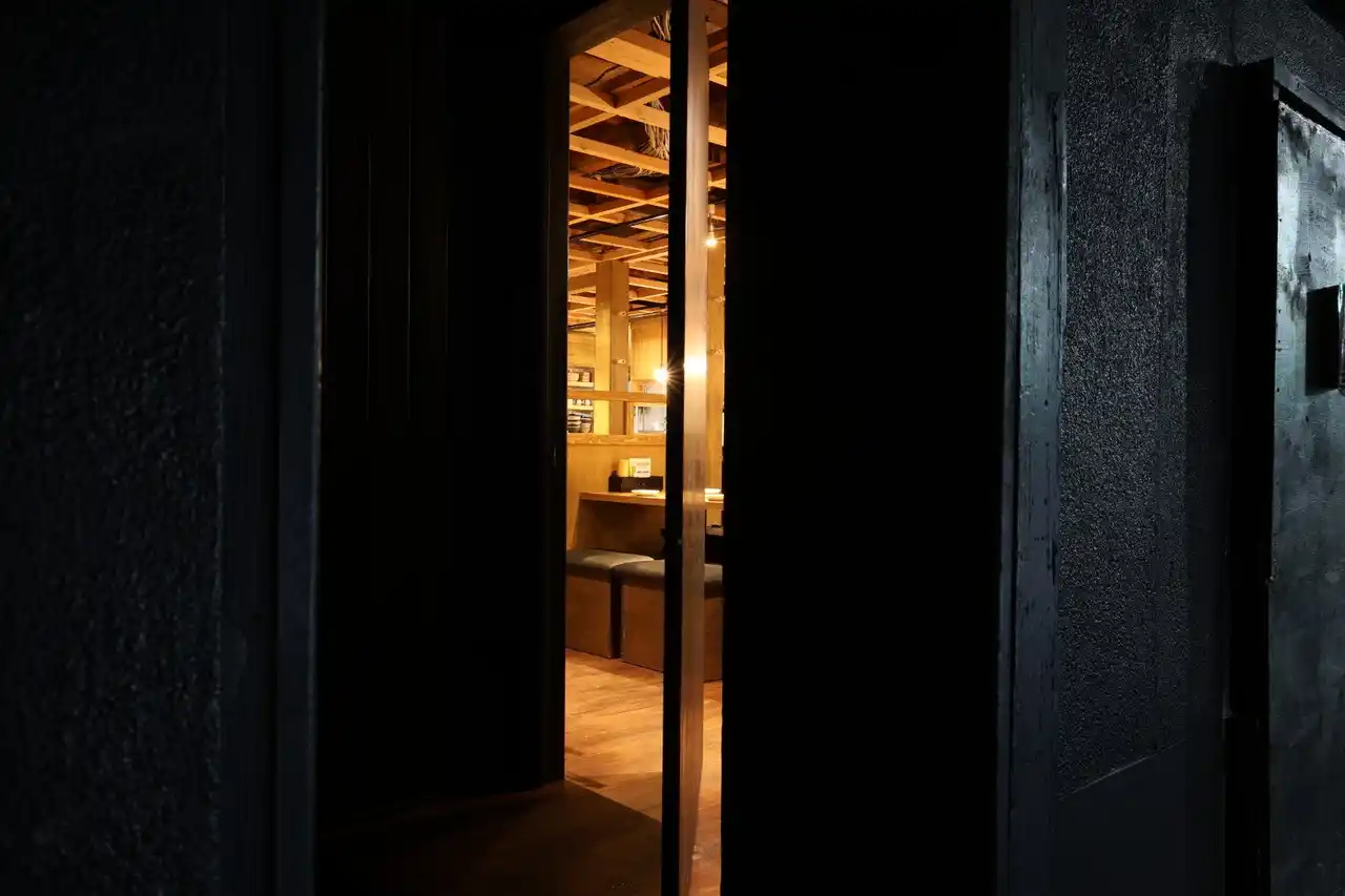 一見しただけではお店などないかのような、暗闇に溶け込む漆黒の外観が特徴。 |