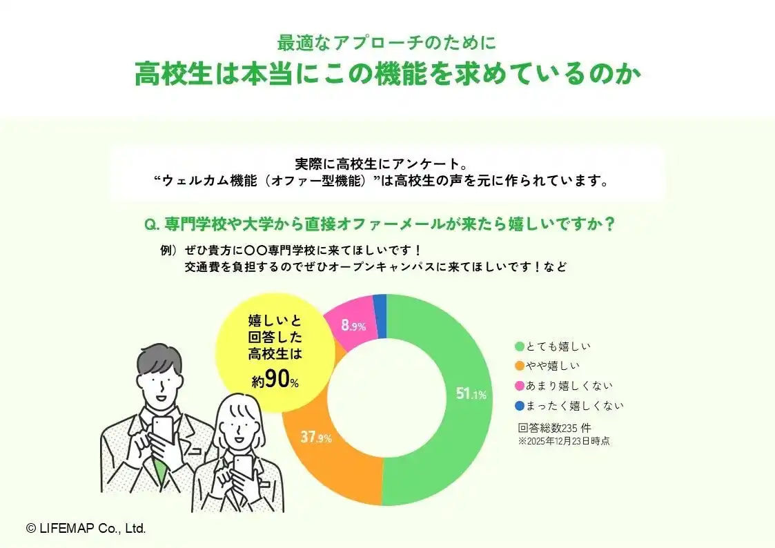 “徹底的な高校生目線”で作る進学情報サイト「コレカラ進路.JP」を運営する株式会社ライフマップ(本社:東京都品川区、代表取締役社長:佐藤孝昭)は、2026年4月1日、「コレカラ進路.JP」において、高校生の進路選択に伴走するマイページ機能を新たに提供開始いたします。 |