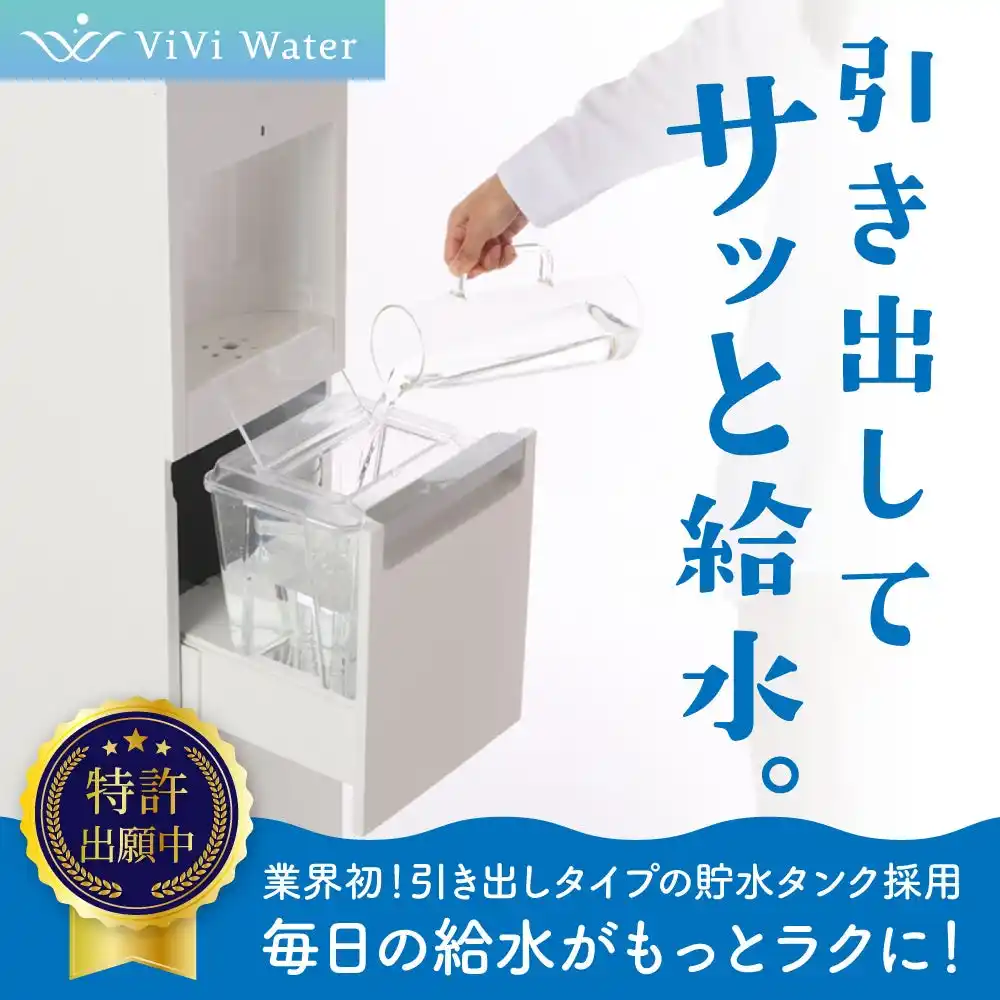 「ViVi Water」は、家庭やオフィスで誰でも手軽に安心・安全な水が飲める、健康と環境に配慮した浄水型ウォーターサーバーです。 |