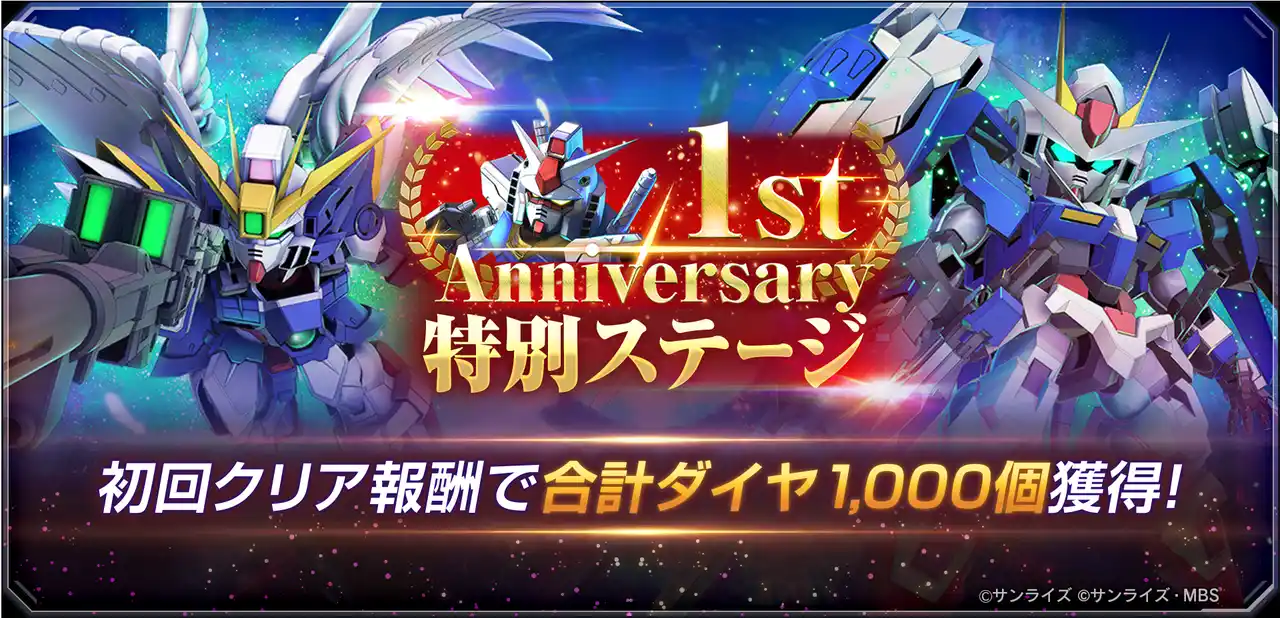 「1stアニバーサリーピックアップガシャ」にて初登場した限定URユニット「ウイングガンダムゼロ(EW版)(EX)」と 「ダブルオーライザー(最終決戦仕様)(EX)」をそれぞれお試しできる「1stアニバーサリー特別ステージ」を追加いたしました。 |