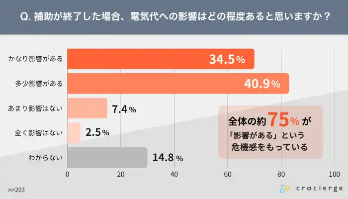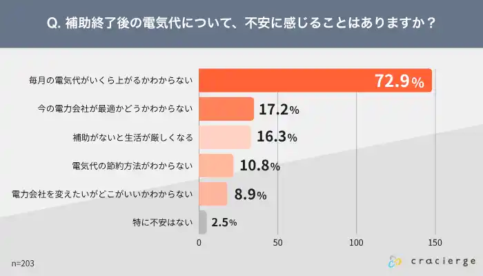 補助終了後の電気代について、不安に感じることはあるか |