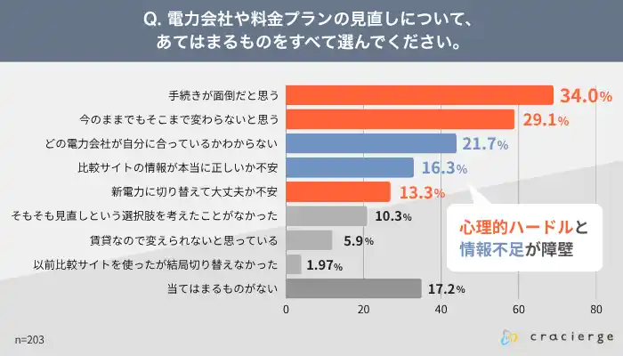調査結果3.:電力会社の見直しを阻む最大の壁は「手続きが面倒」「どこが合うかわからない」。情報と心理の二重の障壁 |