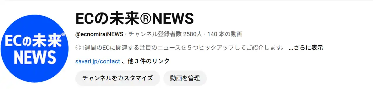 サヴァリ株式会社はこの課題認識のもと、株式会社デジタルコマース総合研究所 代表取締役 ECアナリスト 本谷知彦氏を迎え、YouTube公式チャンネル【ECの未来NEWS】にて新たなコンテンツの配信を開始いたします。 |
