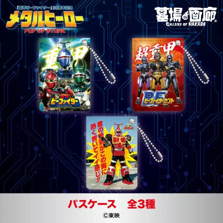 メタルヒーローシリーズでも異色を放つ『重甲ビーファイター』『ビーファイターカブト』『ビーロボカブタック』から、各タイトルごとに3種のパスケースが登場!各作品のロゴと主要キャラクターをデザインしたパスケースは、通勤・通学のお供に最適!大事なカード類を外敵や衝撃から守る「重甲」仕様のパスケースで日々の生活を安全に過ごそう! |