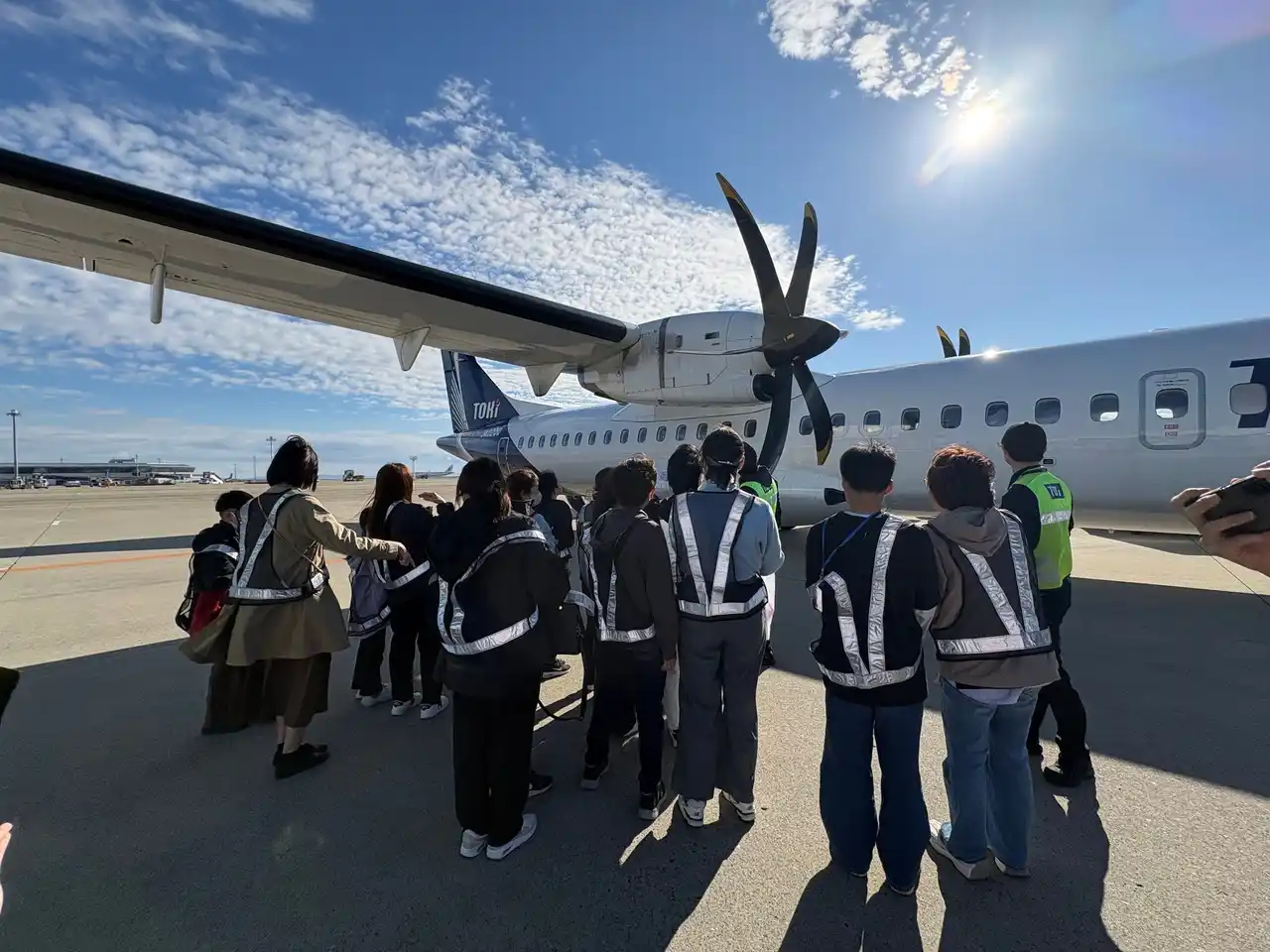 今回、常滑市さま、セントレアさまと共に、未来ある若い世代の皆さんに、トキエアや空のおしごとについて知っていただく機会を創出できたことを、大変ありがたく思っています。普段は飛行機の「表側」しか目にする機会が少ない中で、飛行機を飛ばすためには、多くの仕事や役割、さまざまな機材が関わっていることを学んでいただきました。 この体験をきっかけに航空業界に興味を持ち、将来「空のおしごと」に携わりたいと思ってもらえたのであれば、これほど嬉しいことはありません。 |