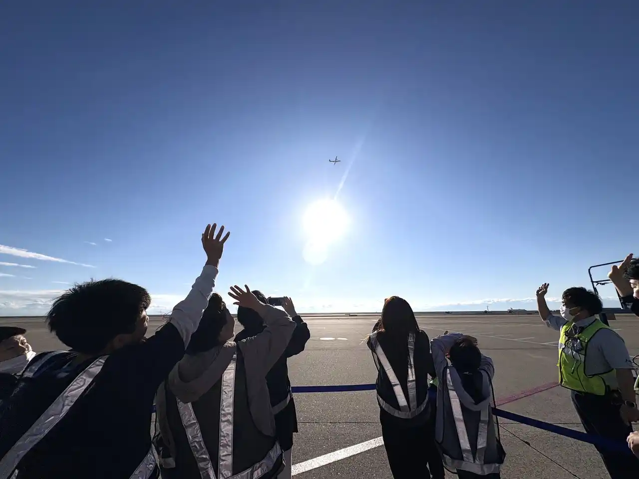空の彼方へ消えるまで手を振る参加者 |