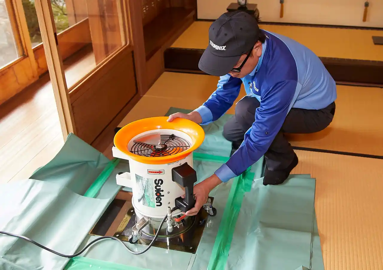 作業員が直接床下に潜り、安全性に配慮したニオイの少ない薬剤を散布して駆除・予防する施工方法。 |