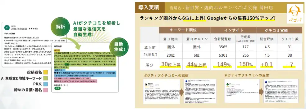 株式会社Giv-ning(本社所在地:東京都渋谷区、代表取締役:松本 光希)は、2026年4月1日(水)より、Googleマップ高評価クチコミ獲得支援ツール「クチコミッション」の『プレミアムプラン』において、AIを活用したクチコミ返信機能や詳細なMEO分析機能など、店舗集客をさらに強力に後押しする新機能をリリースいたしました。 |