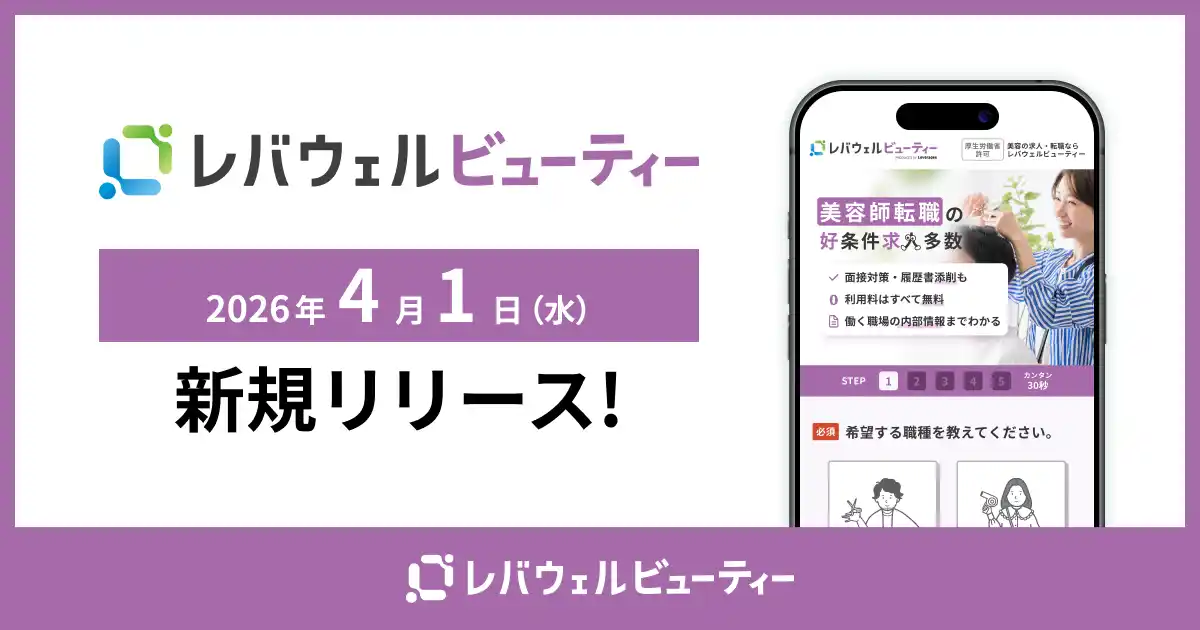( https://corp.levwell.jp/ )は、4月1日(水)より、美容師をはじめとする美容業界に特化した求人・転職サービス「レバウェルビューティー」( https://levwell-beauty-agent.jp/lp/1/ )の提供を開始いたします。 |