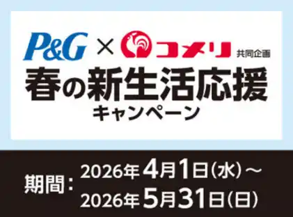 ホームセンターの「コメリパワー」や「コメリハード&グリーン」を通し地域のライフラインであり続けたいと願う株式会社コメリ(所在地:新潟県 新潟市、代表取締役社長:捧 雄一郎)は、コメリの決済手段「コメリカード」会員様特典として、2026年4月から新たに期間限定キャンペーンをスタートしましたので、ご紹介いたします。 |
