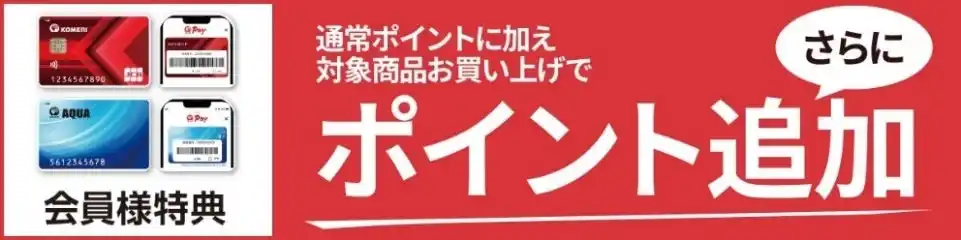 コメリカードやアクアカードでご購入いただくと、通常購入時のポイントとは別に、さらにポイントがもらえるお得な商品をご紹介します。 |