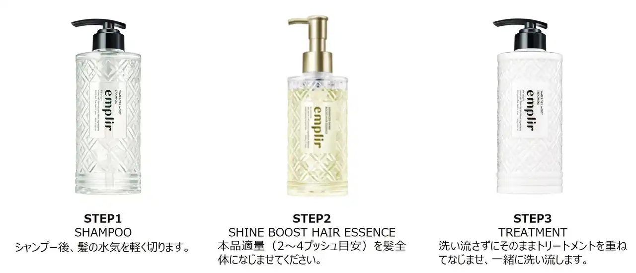 株式会社MD(本社所在地:東京都港区、代表:石井 賢介) は、髪の水分蒸発に着目したヘアケアブランド「emplir(アンプリール)」から、トリートメント前に使う髪の美容液「シャインブースト ヘアエッセンス」を4月1日(水)に発売します。日常のヘアケアにプラスすることで、髪にたっぷりの美容成分を与えツヤ髪へと導きます。 |