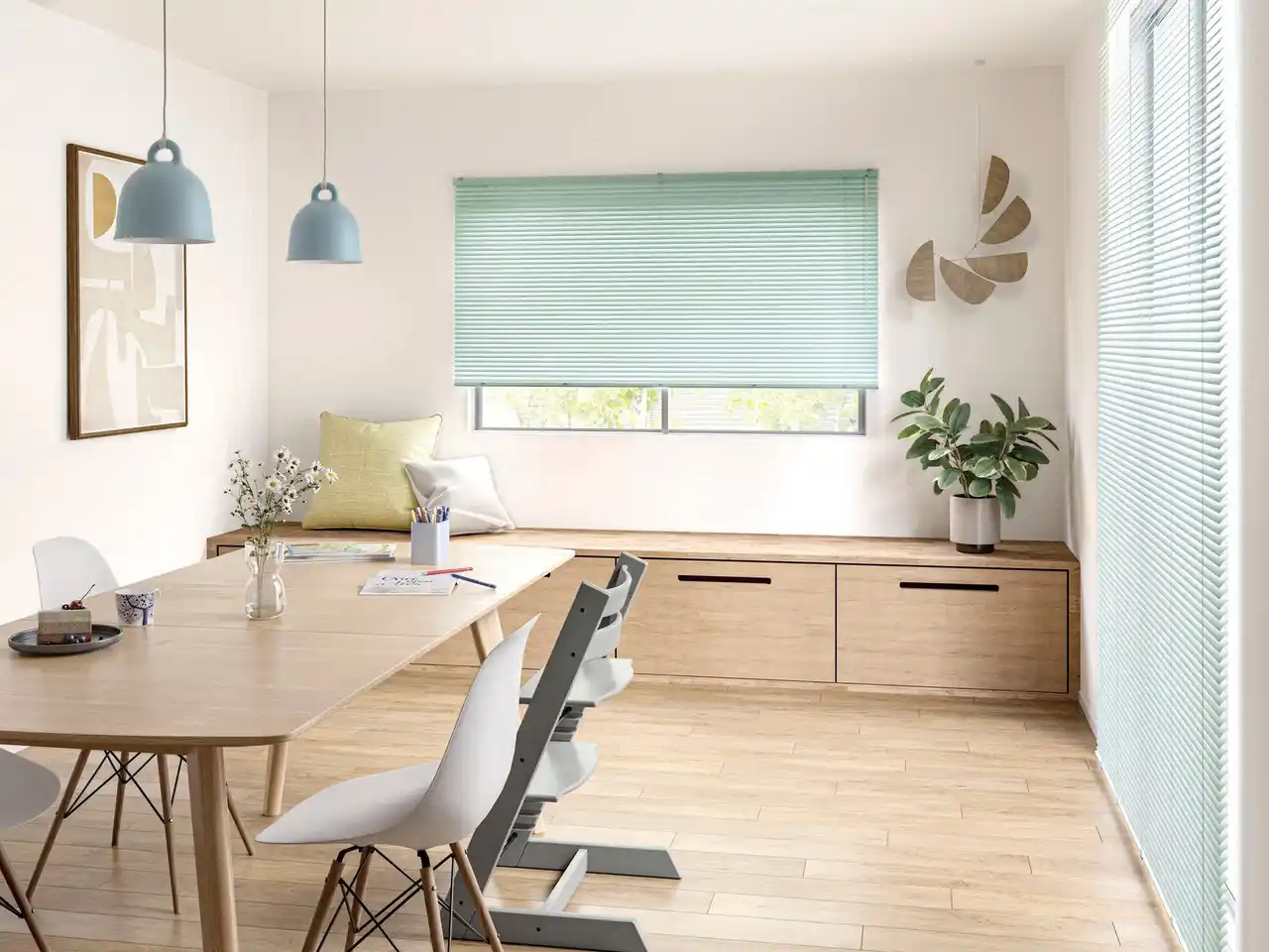 今回追加する「ハンドル操作」は、操作コードがなく、すっきりとした意匠性で、ブラインド下部に設けたハンドルを上下に動かして昇降を行う操作方法です。ハンドルを軽く操作するだけで、お好みの位置にブラインドの開閉が行えるため、片手でも扱いやすく、直感的に操作できます。少ない動作でスムーズに開閉できる点も特長です。小さなお子様のいるご家庭のダイニングやリビングなどの住宅空間に加え、クリニックや店舗などの非住宅空間にも導入しやすい仕様です。 |