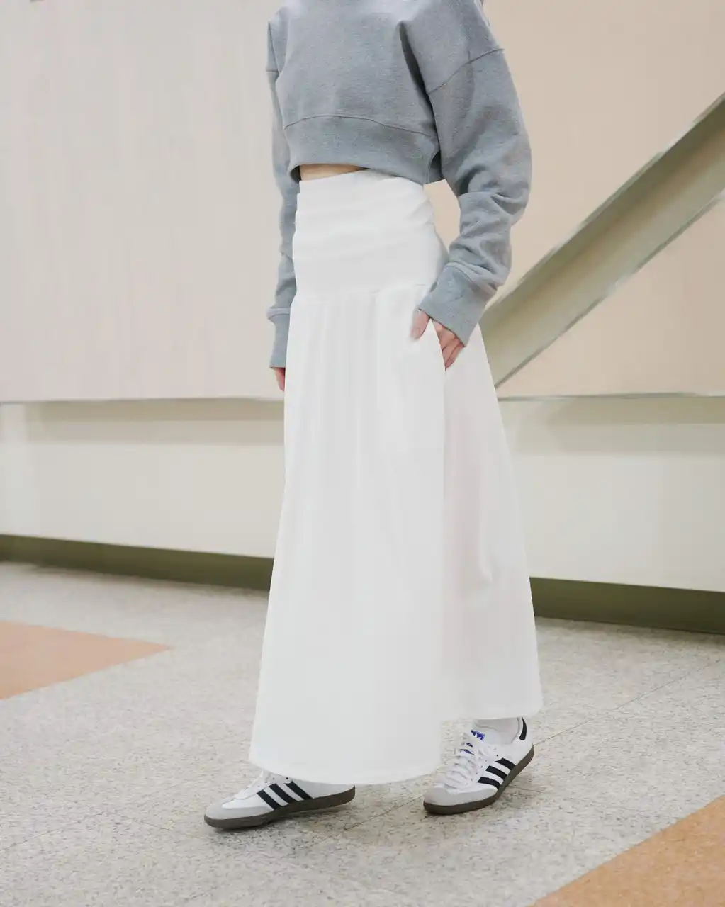 | スカートは動きのあるフレアシルエットで、コーディネートにも取り入れやすいデザインに仕上げました。移動中だけでなく、旅先での街歩きにもそのまま着用できるアイテムです。 | |||||||||