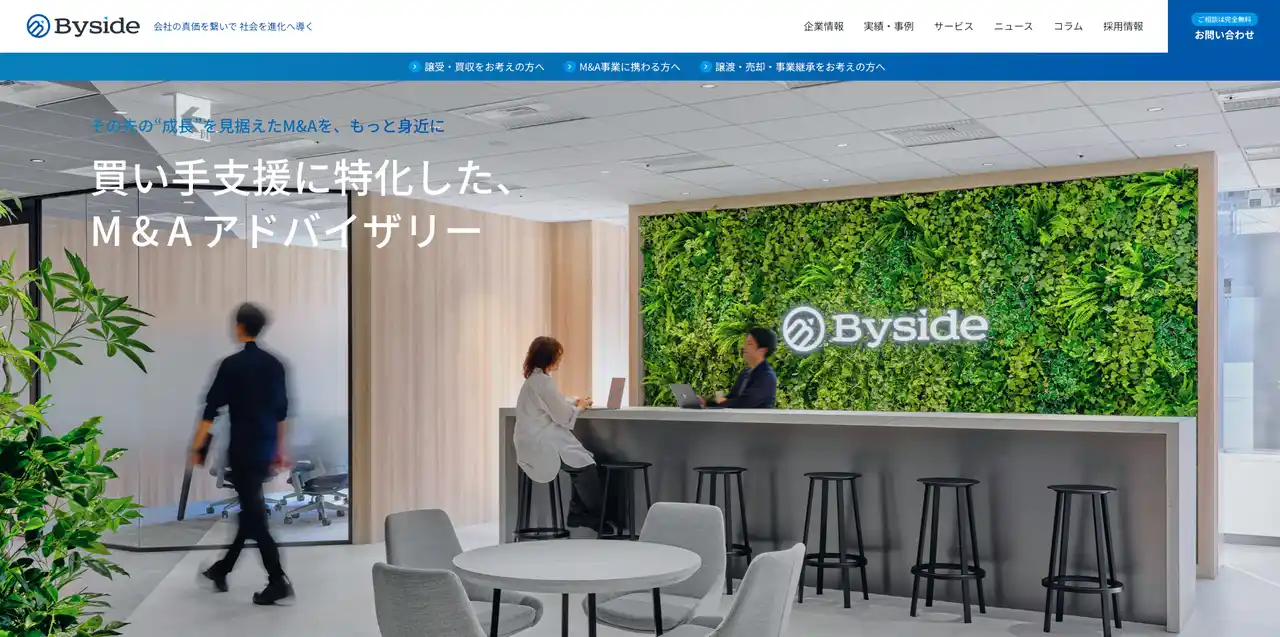 | Byside株式会社(本社:東京都千代田区、代表取締役:川畑勇人)は、買い手企業に特化したM&A支援の強化を目的として、コーポレートサイト(https://byside.co.jp/)を全面リニューアルいたしました。 | |||