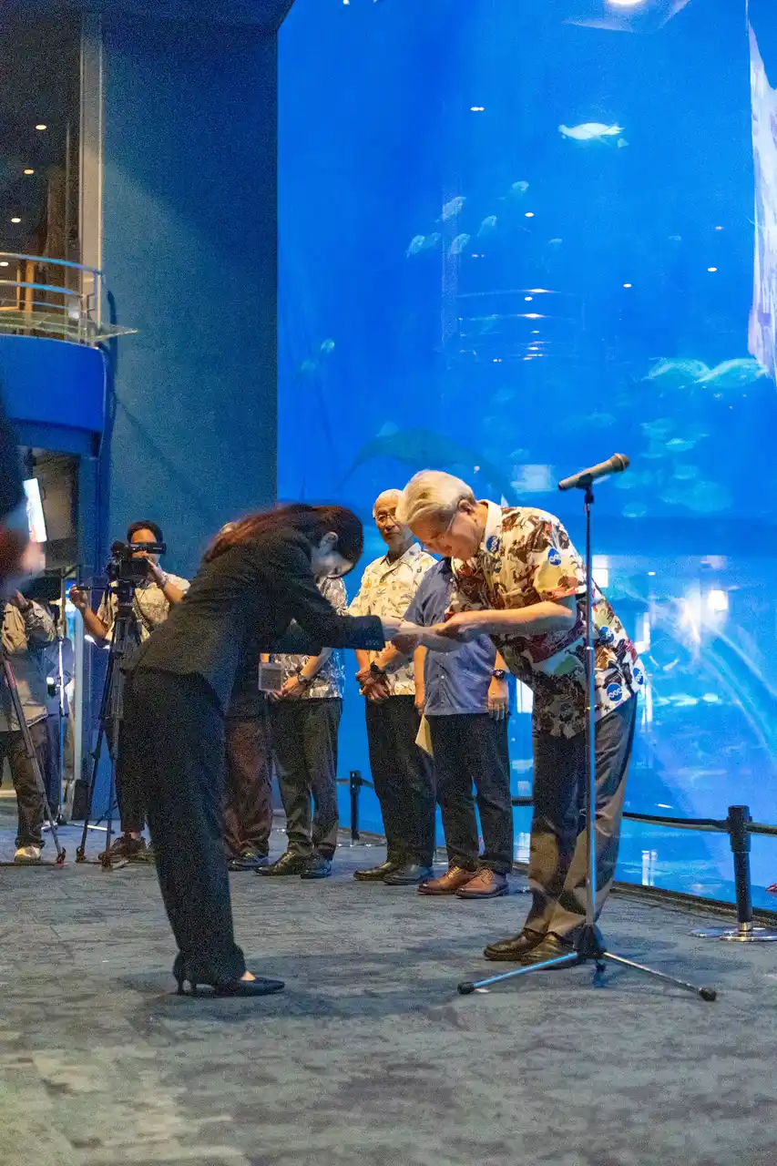 一般財団法人沖縄美ら島財団(理事長:湧川 盛順)は令和8年4月1日(水)沖縄美ら海水族館 「黒潮の海大水槽」において令和8年度入社式を執り行い、新たに20名の職員を迎えました。 |
