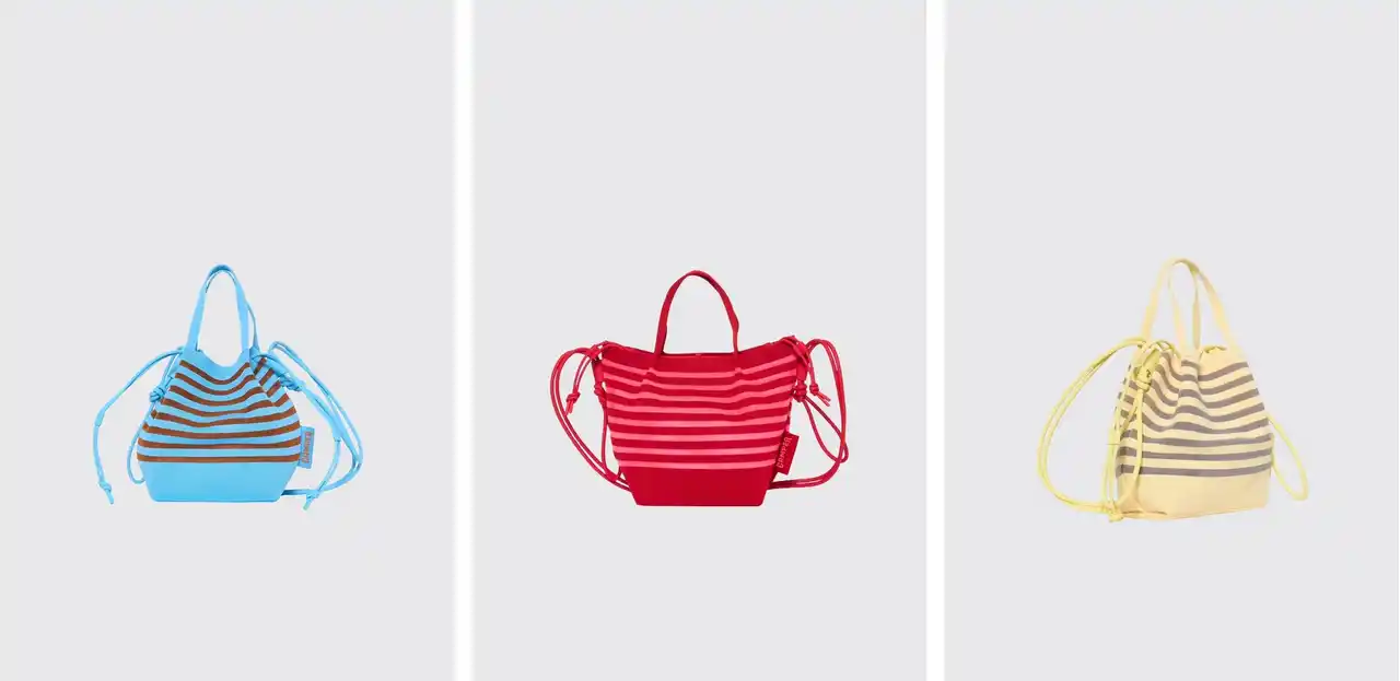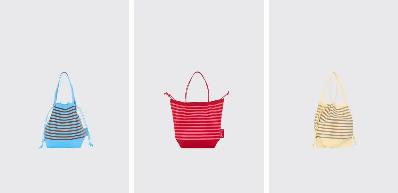 ボーダー柄のメリージェーンの発売にあわせ、今シーズンは同柄を採用したメッシュバッグシリーズ「Daira(ダイラ)」も登場します。リサイクルポリエステル糸と透明糸をボーダー状に編み上げたトートバッグシリーズは、美しいフォルムを保ちながらも軽量で、通気性に優れているのが特徴です。透明糸にはマットな質感の糸を使用し、中身が過度に透けないよう配慮しました。A4サイズや13インチのPCが収納可能なトートバッグと、結び位置によってストラップの長さ調整ができるショルダートートバッグの2型を展開します。 |