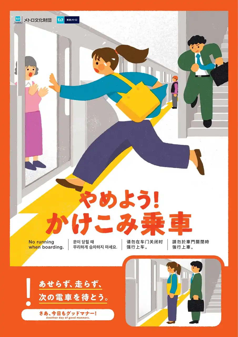 東京地下鉄株式会社(本社:東京都台東区、代表取締役社長:小坂 彰洋)は、2026年4月から2027年3月まで、公益財団法人メトロ文化財団 (東京都千代田区、会長:本田 勝)が制作するマナーポスターを駅構内及び電車内に掲出し、すべてのお客様が快適に地下鉄をご利用いただけるよう、マナー向上へのご協力を呼びかけます。 |