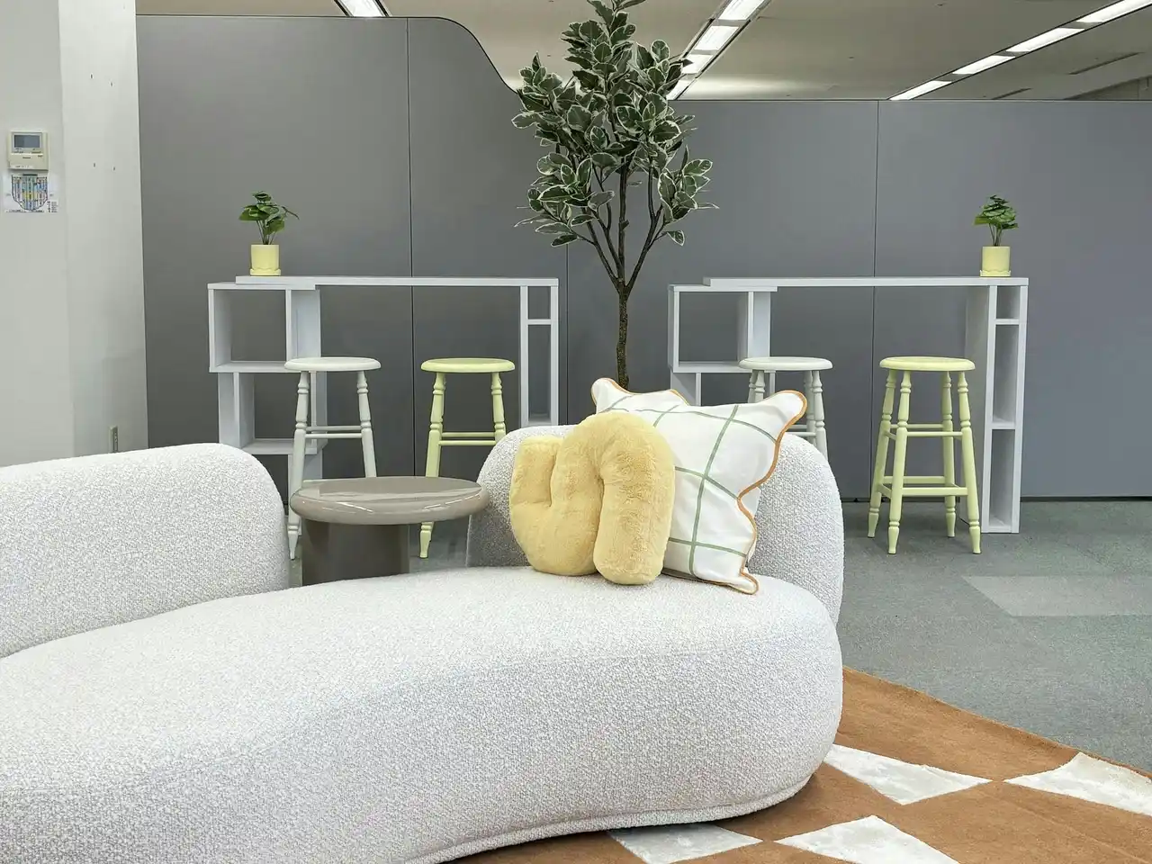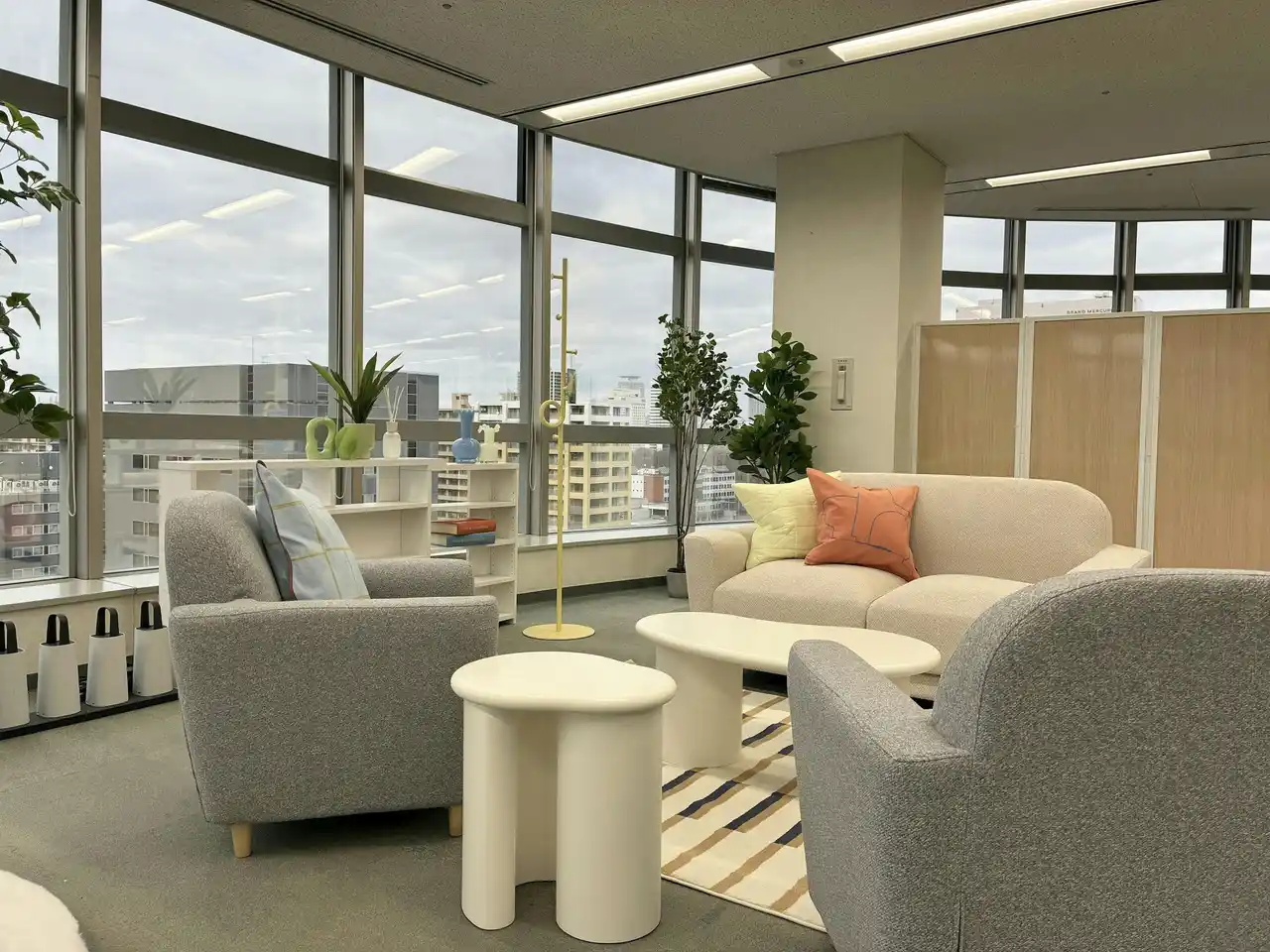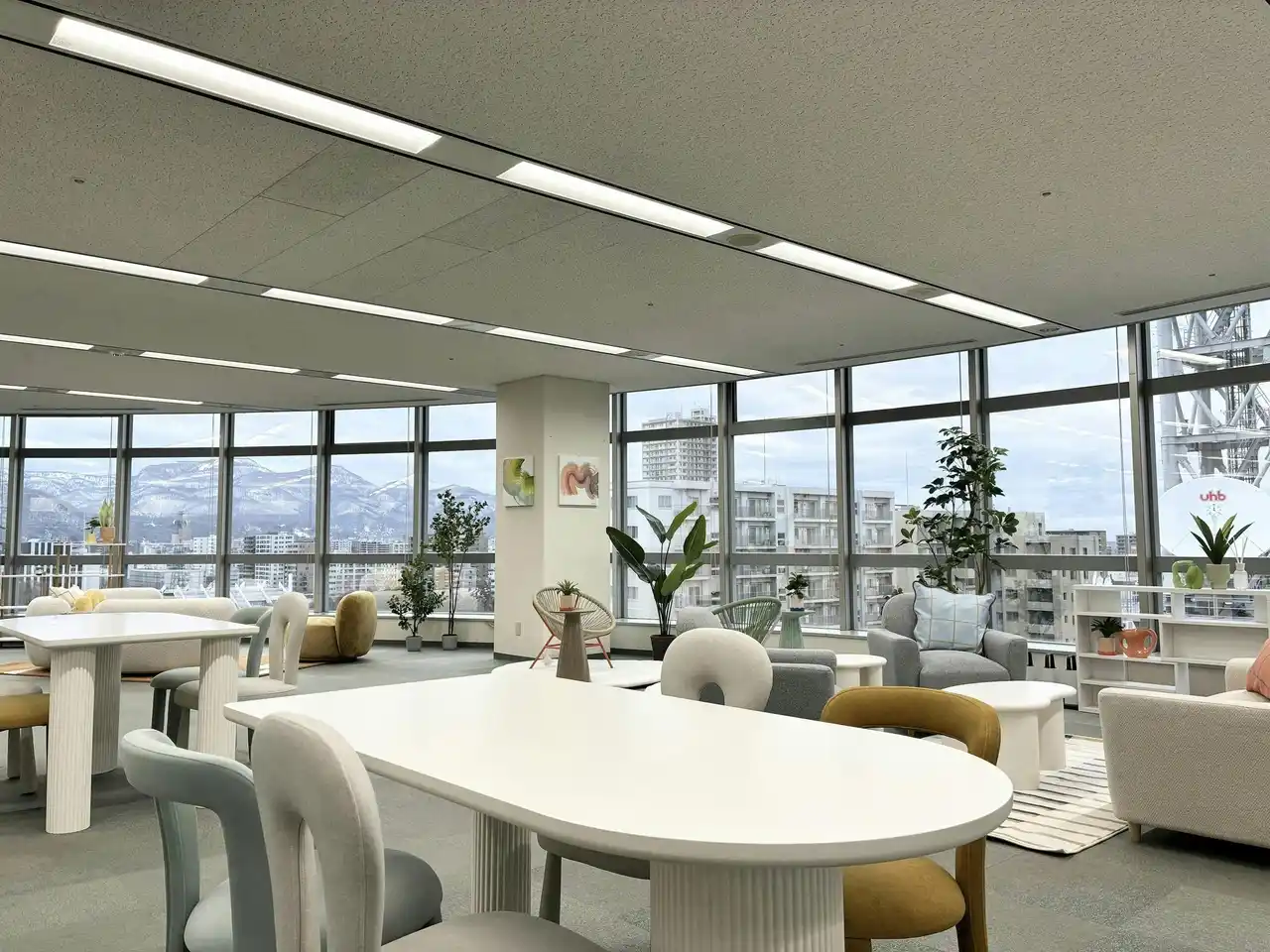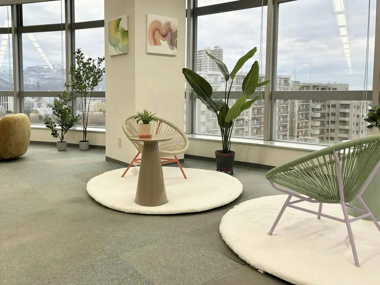 本取り組みは、NTTドコモビジネス北海道支社様におけるオフィスレイアウト変更の一環としてご相談をいただいたものです。デザインのご提案から専用スペースをつくられるのは、支社初の試みとのこと。NTTドコモビジネス北海道支社様では、2026年度に向け「オフィスを活用した新しいコミュニケーションの形」を検討される中で、コミュニケーションの活性化によるエンゲージメントの向上と、社員の皆さまが心地よく過ごせる「おしゃれな空間づくり」を目指されていました。 |