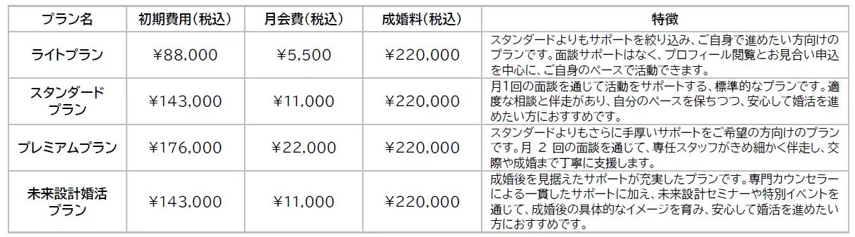 お客様の婚活スタイルやご希望に応じて、4つのプランをご用意しています。 |