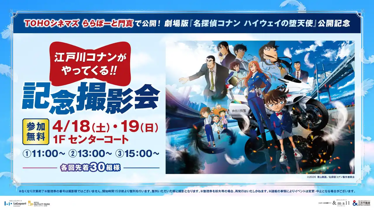 ■劇場版『名探偵コナン ハイウェイの堕天使』公開記念撮影会 ■4月10日(金)~19日(日) 三井ショッピングパークポイント ポイントアップデー |