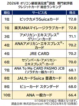 『クレジットカード(専門家評価)』総合ランキング(2026年 オリコン顧客満足度(R)調査) |