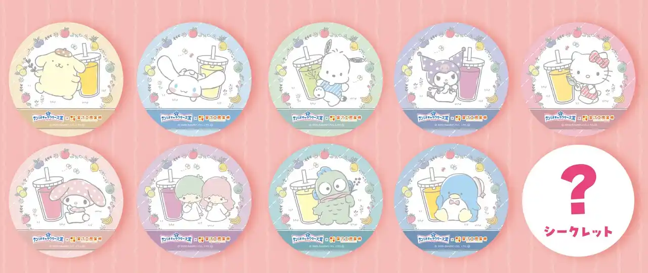 | 期間中は、コラボジュースを1杯ご購入いただくごとに「2026年サンリオキャラクター大賞」に投票できるほか、購入特典として特別デザインの限定コースターを全10種の中からランダムで1枚プレゼントします。 | ||||||||||||||