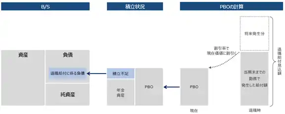 貸借対照表では、退職給付債務(以下、PBO)から年金資産を控除した金額を計上します |