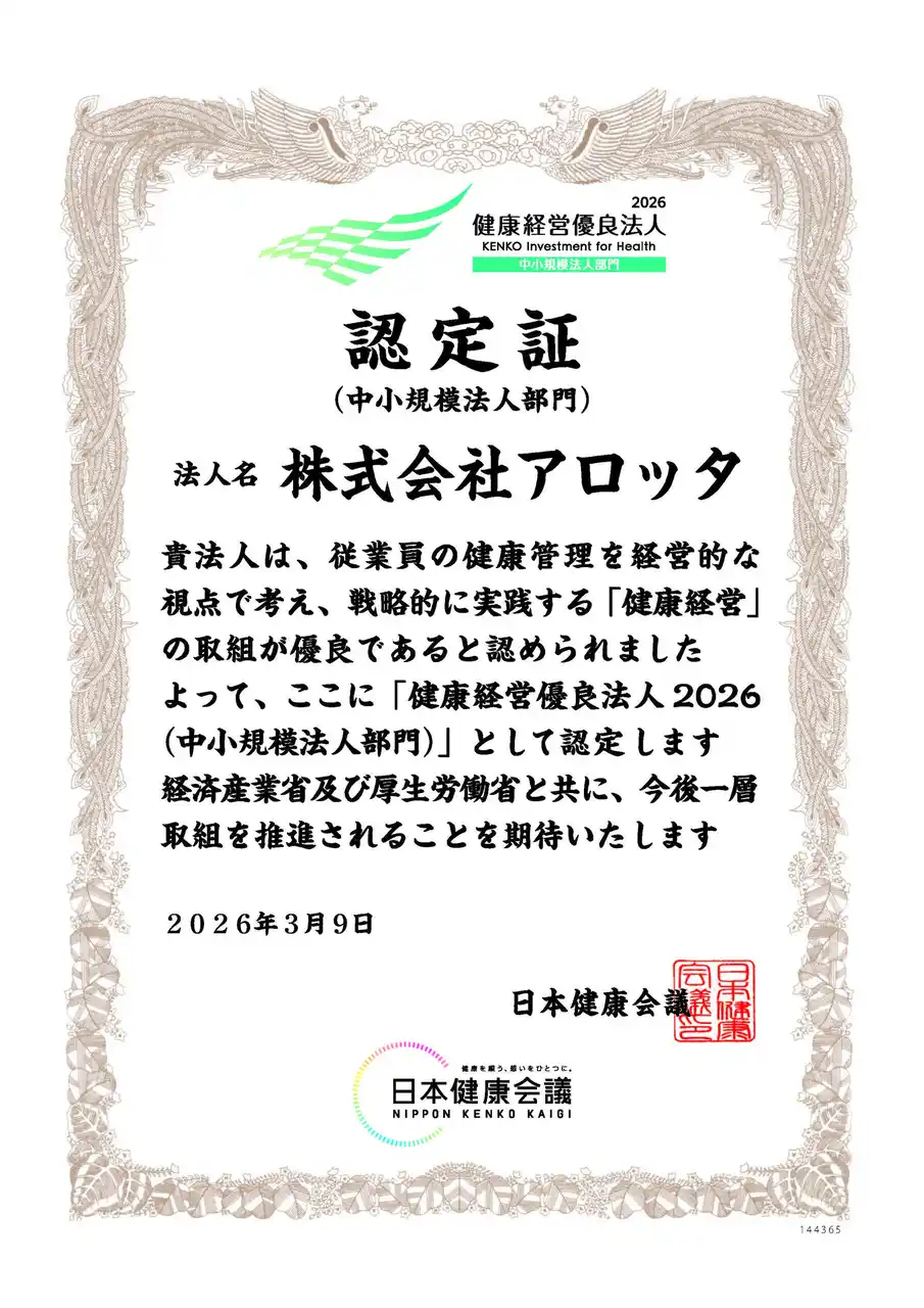 また、グループ会社で美容室を運営する株式会社アロッタは今年初めて「健康経営優良法人2026」に認定されました。長時間労働が一般的となっている美容室での取り組みが評価されました。トリコ・ヘアラボ・アロッタグループは、持続可能な開発目標(SDGs)のひとつ「目標8.働きがいも経済成長も=包摂的かつ持続可能な経済成長及びすべての人々の完全かつ生産的な雇用と働きがいのある人間らしい雇用(ディーセント・ワーク)を促進する」を実現するために、社員の健康と充実した就労環境を整えてまいります。 |