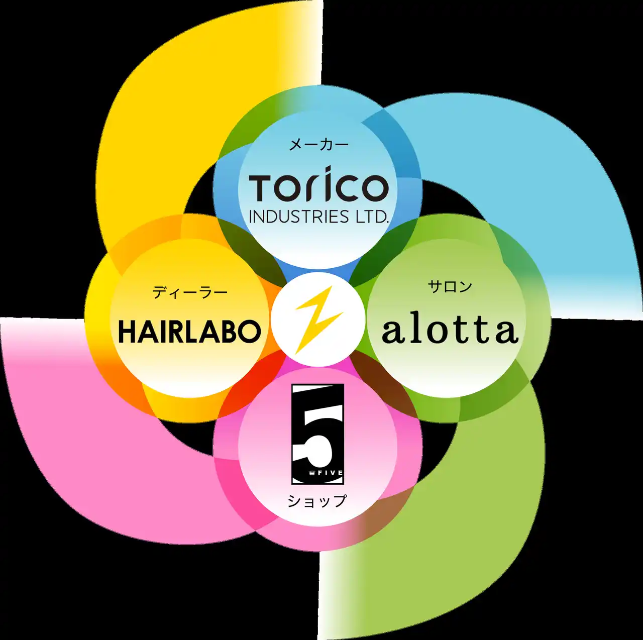 トリコインダストリーズ(torico.co.jp)ヘアラボ(hairlabo.com) ファイブ(five-hair.shop)アロッタ(alotta-hair.com)の4業態によるグループ |