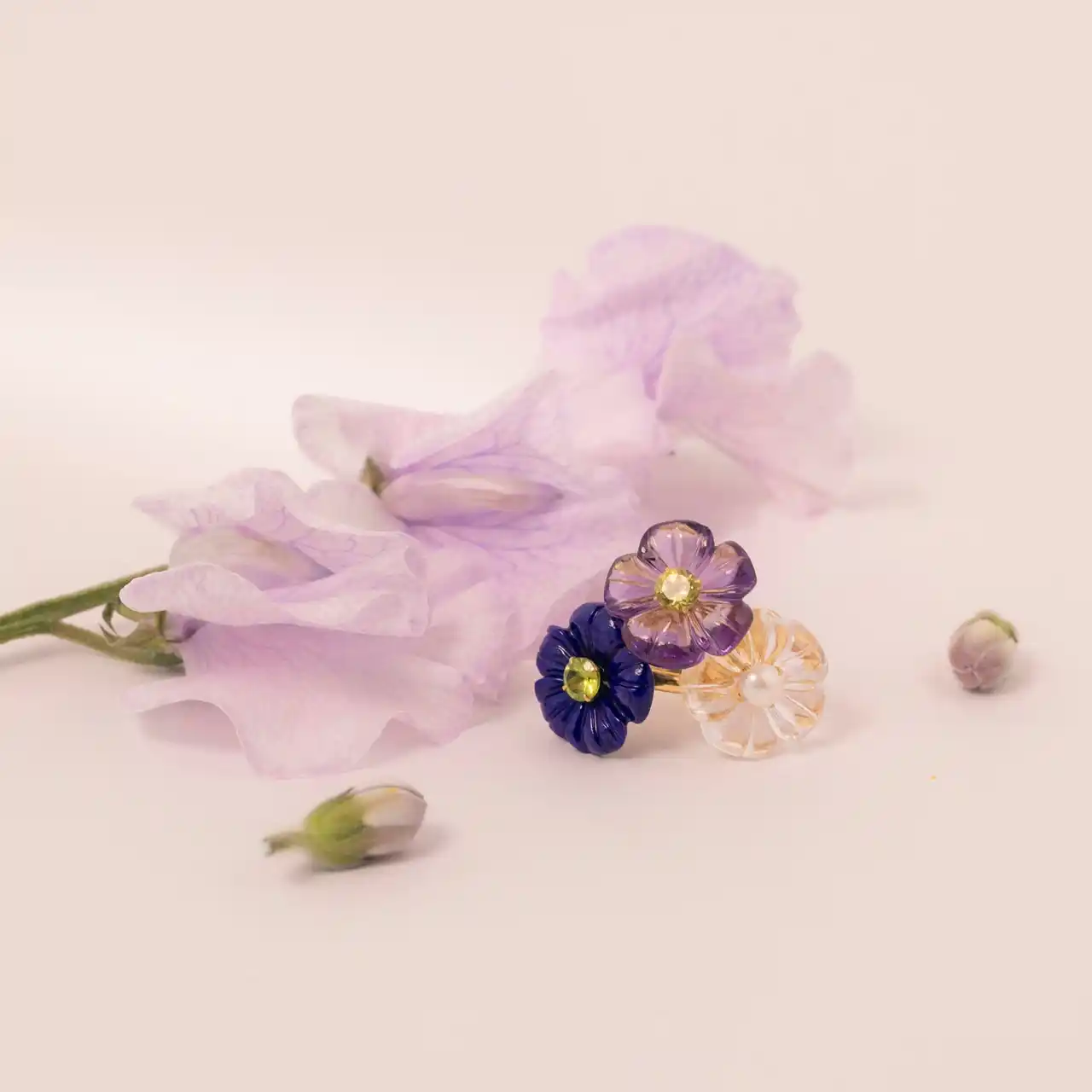 期間中は、春の訪れを祝うカラフルな花々に彩られたジュエリーを展開。オパールやクォーツなどの天然石でみずみずしい花々を描いた代表作“Gem Flower Collection”をはじめ、幼い頃に憧れたおもちゃの宝石をダイヤモンドやサファイアで表現した“Candy Collection”など、心ときめくラインアップを豊富に取り揃えます。 |