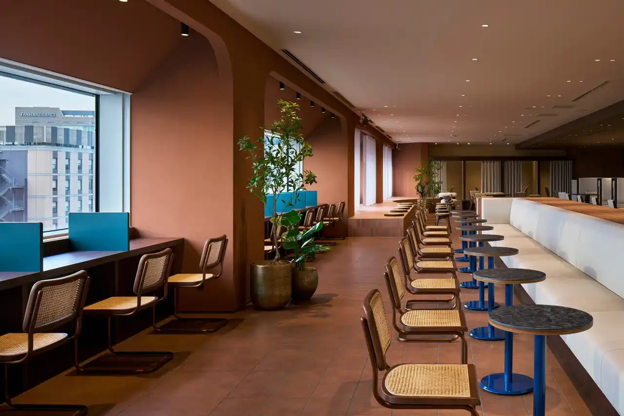 PATIO(パークスパティオ)」として2026年4月1日(水)にリニューアルオープンしました。なんばパークスの象徴である緑豊かなパークスガーデンと呼応する、“働く人のための特別な裏庭”のような空間として計画。働く人が日常的に利用できる場として、打ち合わせや作業だけでなく、休憩や気分転換など多様な過ごし方を受け止める環境を整備しました。