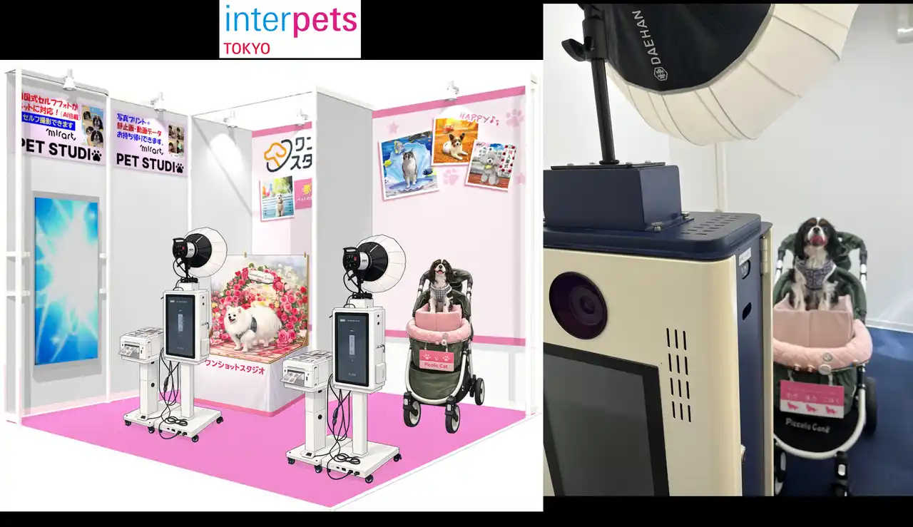 「Mirart PET STUDIO」は、近年トレンドのセルフフォトを“ペット向け”に最適化したサービスで、主な特長は以下の通りです。 ぜひ、会場でお試しください。 |