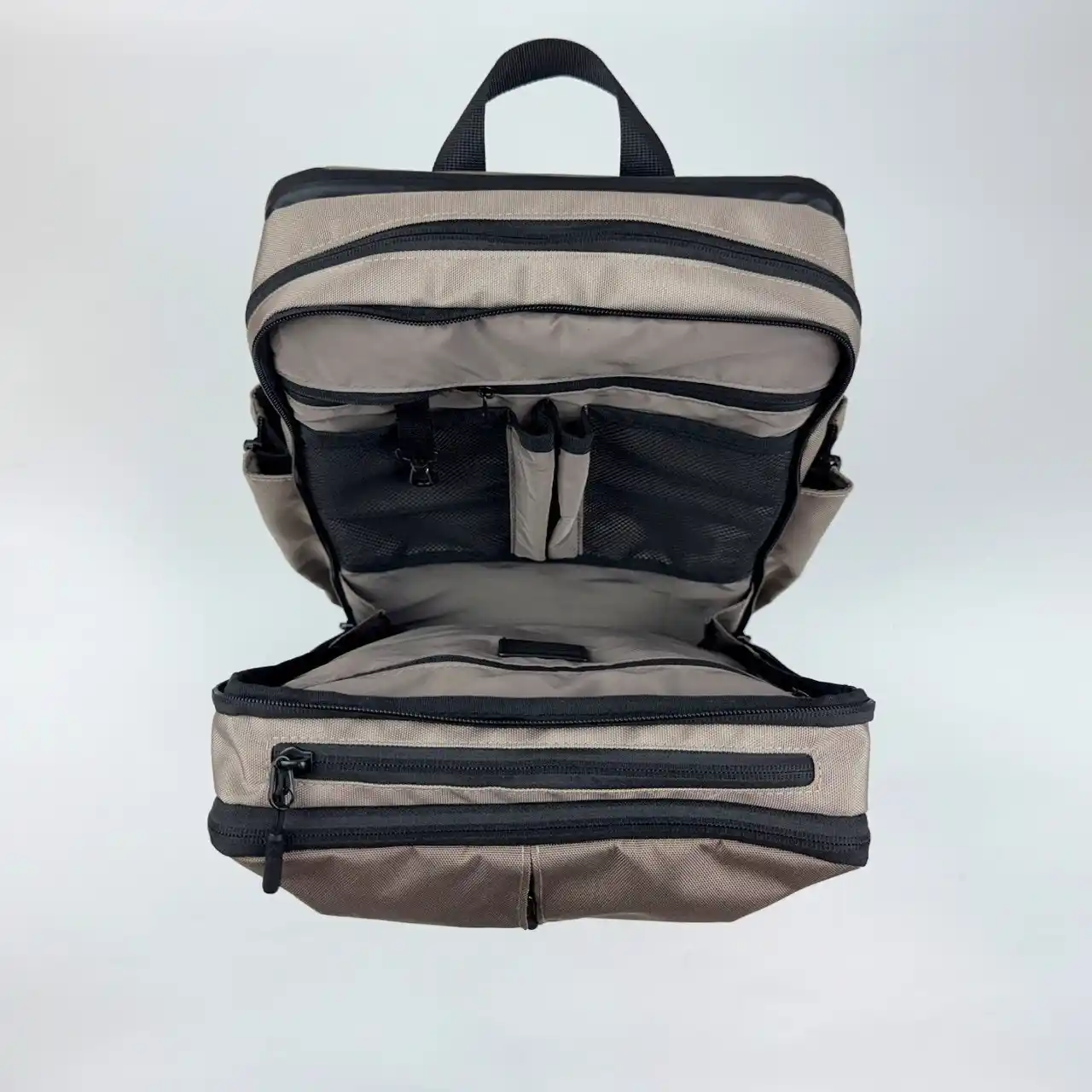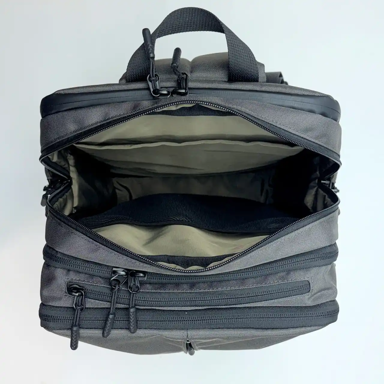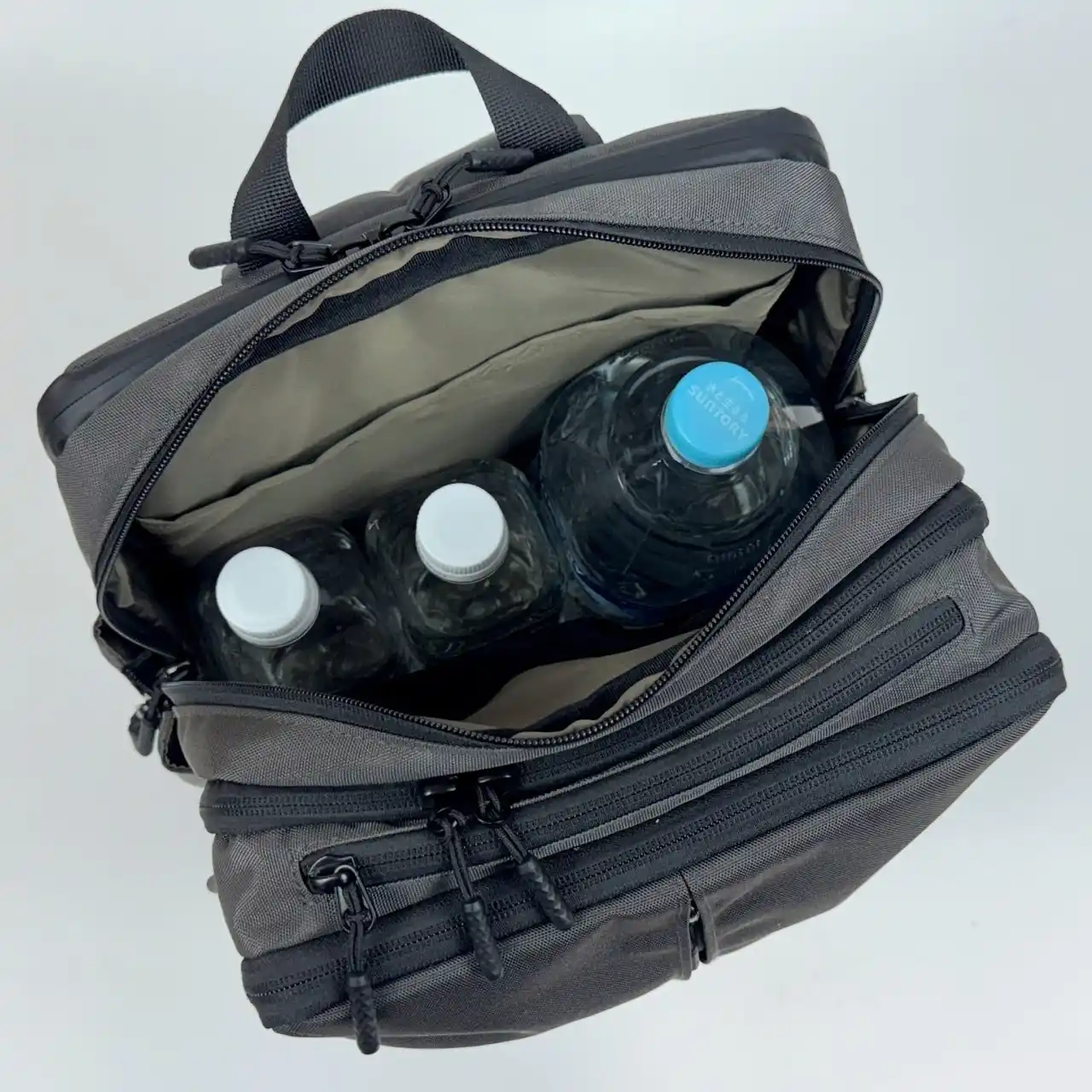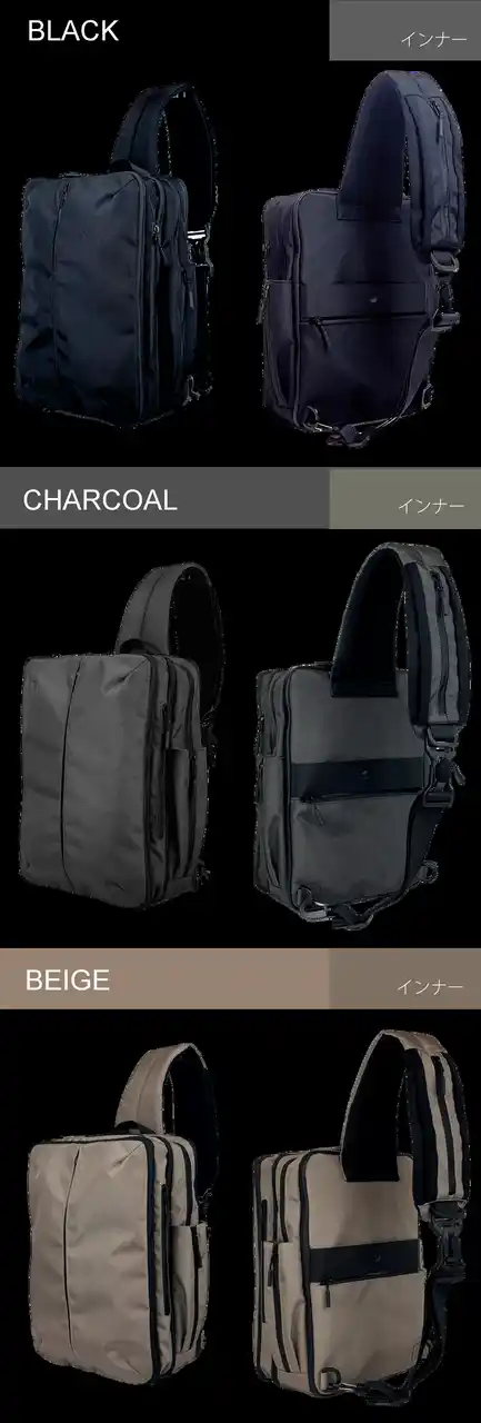 一般販売予定価格:23,000円(税込) 寸法:W25cm × H37cm × D14~19cm 素材 :バッグ本体:1000D ポリエステル100%(撥水加工) 裏地 :ポリエステル100% カラー:ブラック、チャコール、ベージュ |