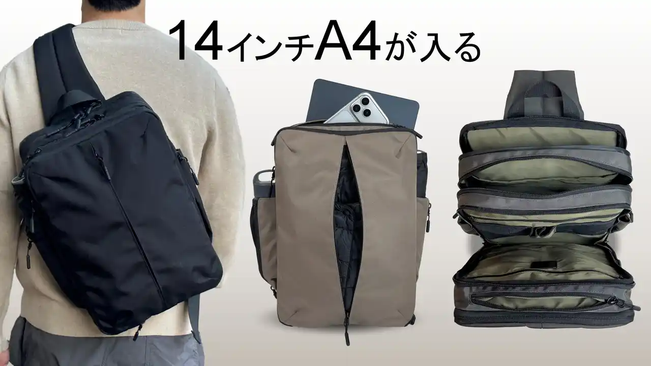 A4はもちろん14インチがピッタリ入る 大容量なのにスリムで軽量! 秘密の拡張スペースで一泊くらいの 着替えも収納可能! 仕事も遊びもアクティブ! そんなあなたのために 新しくアップデートされた 多機能スリングバッグ「ATTIVII」です。 |