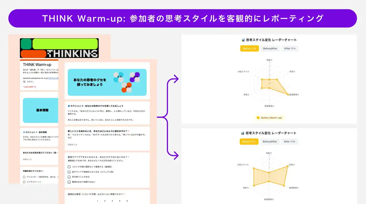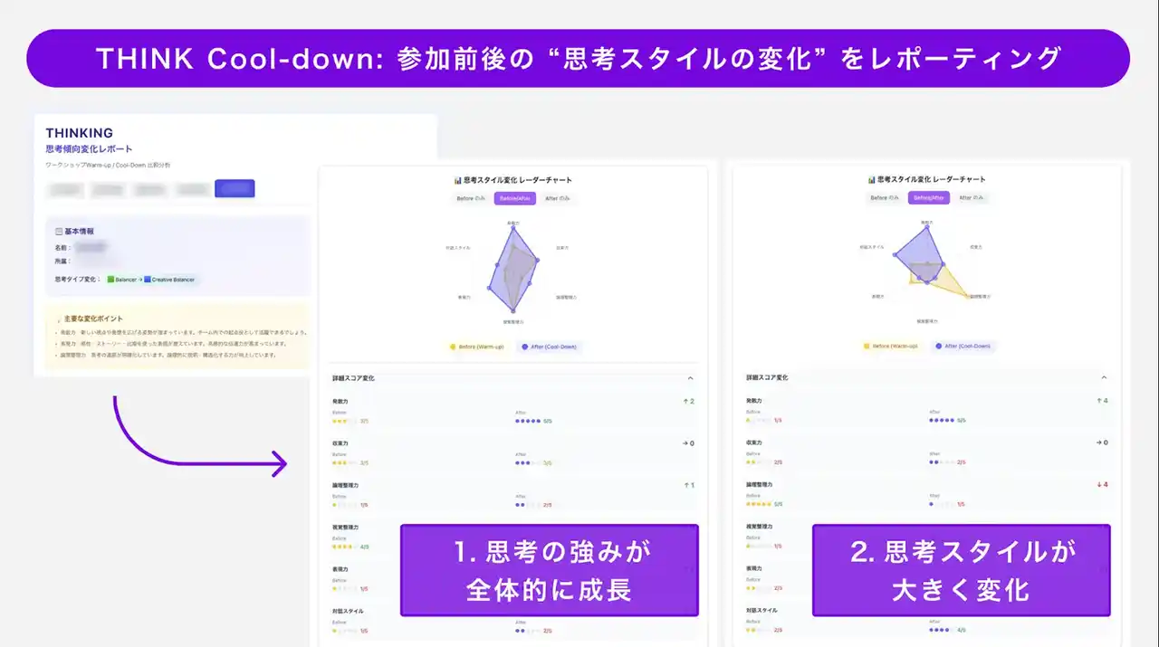 THINK Cool-down:参加後のアンケートをもとに思考スタイルの変化をレポートティング |